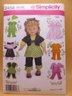 18" Dolls Clothes Sewing Pattern NEW & UNCUT - Simplicity 2296 - 6 Outfits