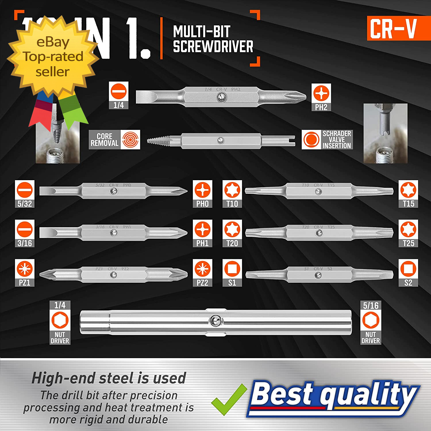 [Clever Design]: The drill bit is easy to store in the handle and easy to carry, so you don't have to worry about losing the drill bit.