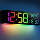 16" Large Digital Wall Clock, Big LED Display with Remote, 8 RGB Color, Alarm