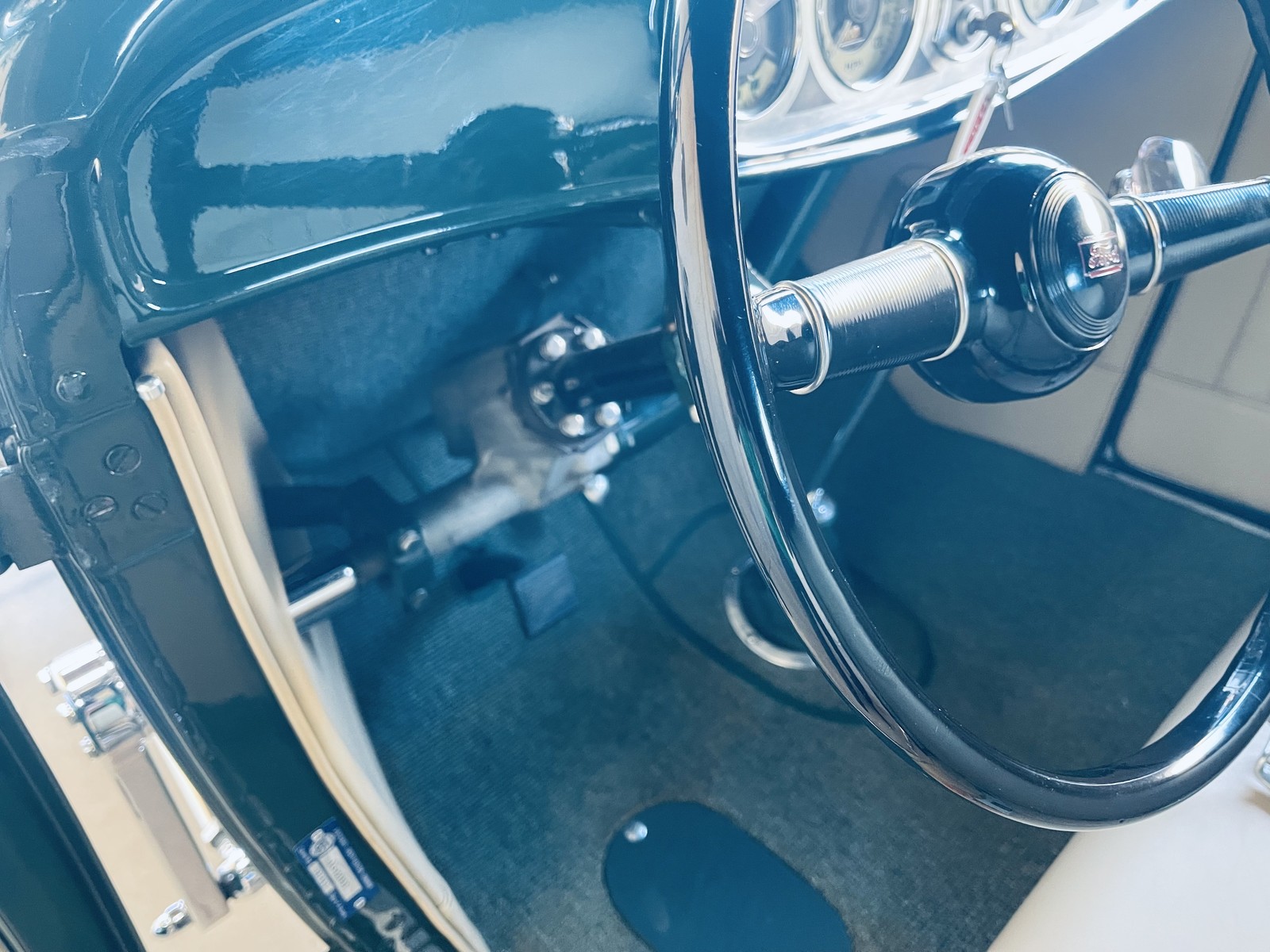 The car is powered by a mid 60’s Buick 425 cid nailhead motor with three carbs. It has a Buick automatic transmission. The rear end is a 9” Ford.