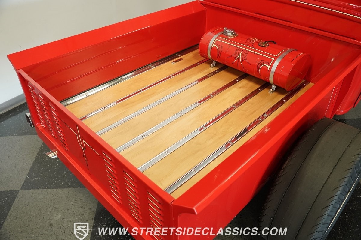 Cruising on a set of powder-coated Wheelsmith steel wheels that position 4.5" wide Firestone Deluxe Champion tires in front and stout 10" wide Firestone Dragster slicks in back, this 1932 Ford Pickup Streetrod features a level of craftsmanship that must be seen in person to be fully appreciated. Call today!
