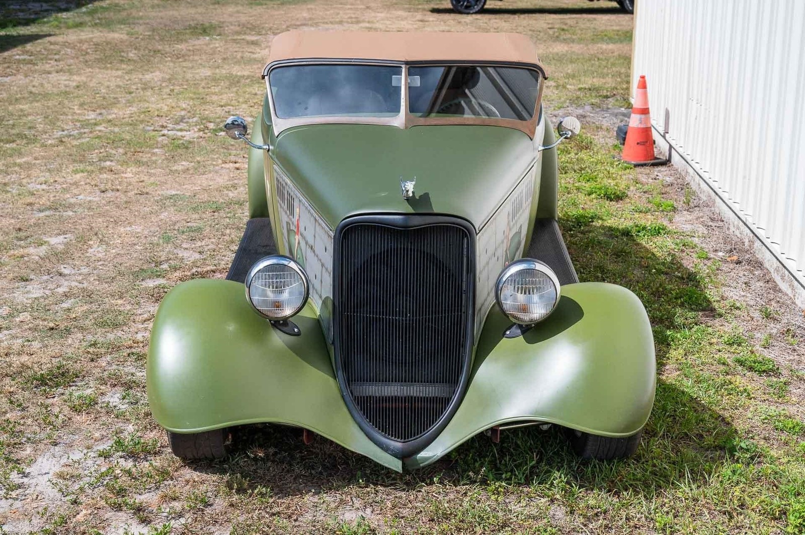 1933 Ford Roadster, WWII Tribute, Downs Body & Chassis, Steel Fenders & Hood, 383ci SBC, Automatic Transmission, Currie 9 Posi This ’33 Ford is a purpose-built, period-inspired WWII tribute that blends traditional hot-rod DNA with thoughtful, name-brand components. The look is authentic and intentional: hand-painted graphics, DuVall-style brass windshield, Dan Fink grille, recently upgraded to leather bucket seats, and a proper big-n-little wire-wheel stance. Underneath the skin, it’s a serious driver with a Downs body and chassis, a stout small-block, and a Turbo 350 Transmission. Highlights Downs fiberglass roadster tub on Downs chassis; steel front fenders and hood 383ci Small-Block Chevy V8, Griffin aluminum radiator for reliable cooling Turbo 350 Automatic Transmission Currie 9 smoothed rear housing with 3.55 Posi for balanced street performance DuVall-style brass windshield; Dan Fink grille Wheel Vintiques wire spokes: 17 rear / 15 front for classic big-n-little stance Lokar hardware (shifter, linkages, details) Hand-painted WWII-era tribute graphics (not vinyl) Up front, the Dan Fink grille sets the tone clean, traditional, and high quality. The DuVall-style brass windshield delivers the right pre-war profile while the hand-painted nose art pays homage to WWII iconography without looking contrived. Steel front fenders and hood give this car the right heft and panel crispness, while the smoothed Currie 9 out back and the staggered Wheel Vintique spoke wheels finish the silhouette like a proper lakes-style roadster. Drivetrain & Chassis Engine: 383ci SBC with the right street manners torque on tap and a healthy idle; Griffin radiator keeps temps in check. Transmission: Turbo 350 Automatic Rear: Currie 9 smoothed housing, 3.55 Posi a smart compromise for both cruise nights and highway stretches. Chassis: Downs frame engineered for rigidity; the car tracks straight and feels planted. Interior Tan Leather Bucket Seats. Lokar shifter and hardware for precise, clean operation. Straightforward, driver-first layout with a focus on function over frills. Tribute Details WWII-style hand-painted graphics done the right way by hand so it ages with character. Built to be driven and shown; it presents well and turns heads, but it’s not a trailer-queen museum piece. If you’re looking for a ’33 roadster that honors wartime heritage with credible hardware and real road manners this WWII Tribute delivers the brief. While we do our best to provide the highest quality muscle cars with an honest and reliable description and realize the importance of transparency when selling vehicles. That being said, we have not built, modified, changed or personally owned this vehicle. Whether this vehicle is consigned or owned by Past & Present Motor Cars we do not know the vehicles complete history since new. We want to be clear and try to answer any questions our customers might have prior to purchasing. Additionally, we not only welcome but we encourage 3rd party independent inspections. Please inquire prior to purchase to make sure the advertised vehicle has not already been sold. We list our vehicles on multiple websites and a vehicle can sell at any time. If a customer chooses to purchase sight unseen (many of our customers choose this option) the customer accepts the vehicle AS IS and WHERE IS and understands we cannot address concerns after purchase. For this reason, it's important all concerns are addressed prior to purchase. We make every effort to present accurate and reliable information, but use of this information is voluntary, and should only be deemed reliable after an independent review of its accuracy, completeness, and timeliness. It is the sole responsibility of the customer to verify the existence of options, accessories and the vehicle condition before time of sale. Financing is Available with low rates and Vehicle Shipping is available from our Showroom to your Garage. A Classic Car Warranty is Available for Purchase from a 3rd Party. Please speak to our Sales Associate or Company Representative for more information. Our team is working and available anytime by Phone or Text for your convenience at 407-559-7759. Thank you for your interest!