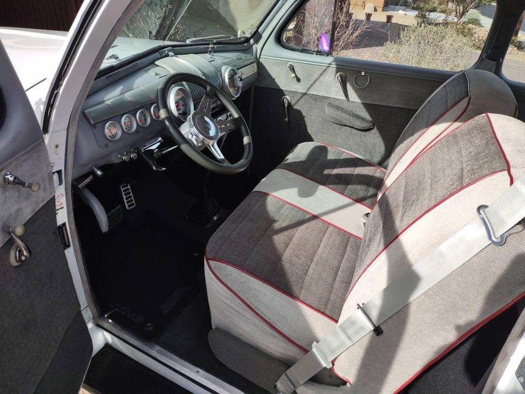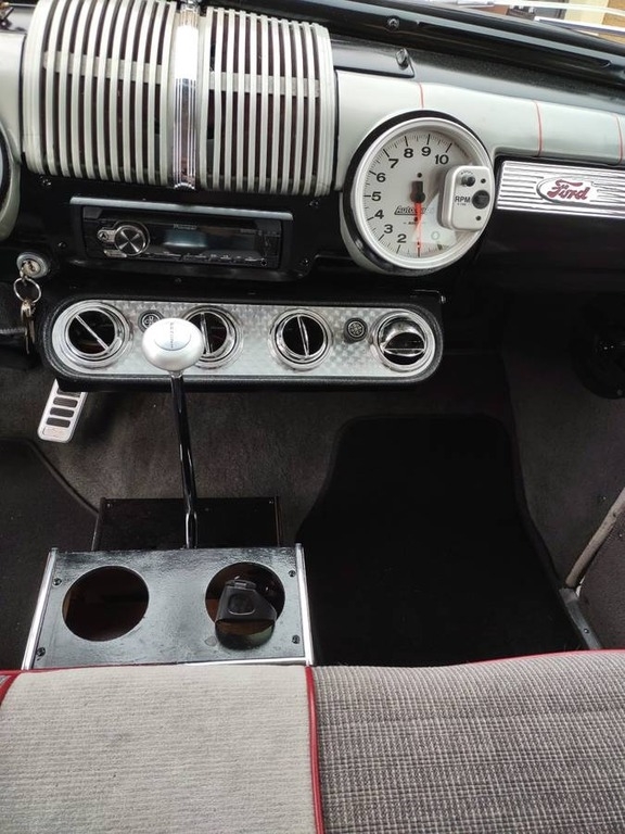 This 1946 Ford Super Deluxe Tudor Sedan blends timeless styling with tasteful upgrades. Powered by a GM 350 crate engine and TH350 transmission, it’s equipped with Edelbrock carburetor, HEI ignition, four-wheel disc brakes, Mustang II front suspension, and power rack and pinion steering. Inside, enjoy a clean and well-sorted setup with a Pioneer Bluetooth sound system and all working gauges. The car’s body and trim are excellent, with stainless stone guards and no rust. A beautiful, road-ready classic that drives as good as it looks.