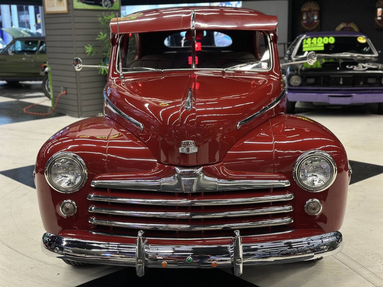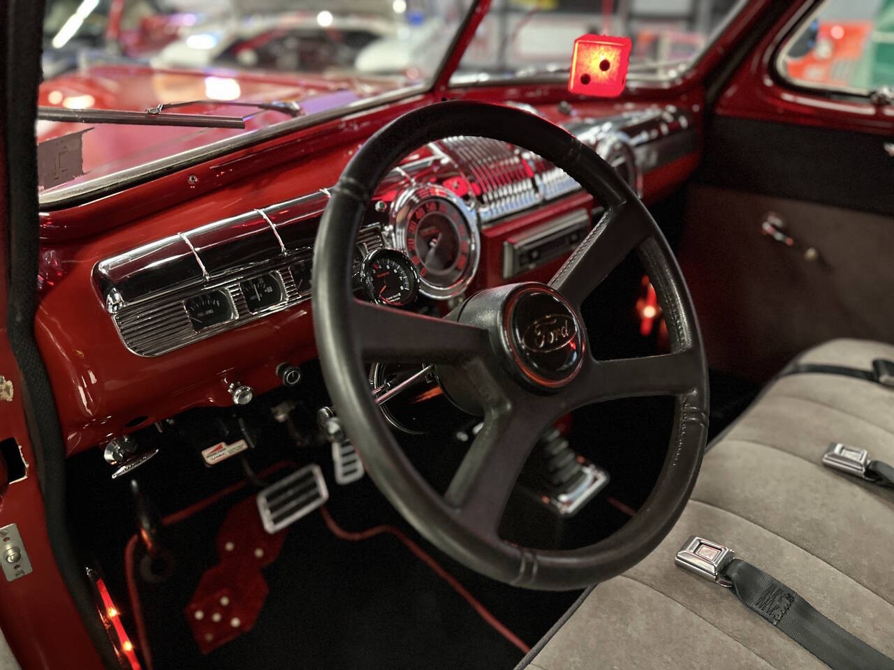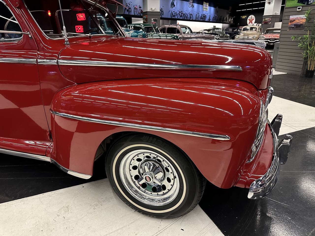 Offered for sale is a stunning 1947 Ford Deluxe, a true piece of American automotive history that blends classic styling with modern performance and comfort. This beautifully restored and thoughtfully upgraded Ford has been meticulously maintained and is currently showcased in a museum, a testament to its quality, presentation, and timeless appeal. Under the hood sits an updated V8 350 engine that runs exceptionally strong and smooth. The engine delivers reliable power and a confident driving experience, making this classic not just a showpiece but a vehicle meant to be enjoyed. Paired with a Turbo 350 Automatic transmission and B&M Shifter, shifting is seamless and dependable, whether cruising around town or stretching its legs on the open highway. This car runs and drives at highway speeds with no issues, offering peace of mind and true drivability that many vintage vehicles can't match. All Gauges Work and Updated CD Pioneer CD Player Sounds Great, Under Dash CB Radio works, Comfort has been carefully considered as well. The vehicle features updated air conditioning, allowing you to enjoy the car year-round without sacrificing comfort, even on warm days. The ride is smooth, stable, and enjoyable, making it suitable for long cruises, car shows, or weekend drives. The exterior is finished in a sweet red paint that perfectly complements the iconic lines of the 1947 Ford Deluxe. The color has excellent depth and shine, drawing attention wherever it goes and highlighting the car's classic curves and chrome accents. Inside, you'll find a nice, clean interior that reflects the same level of care as the exterior. Everything presents beautifully, offering a comfortable and visually striking cabin. Adding a modern custom touch, the car features custom lighting throughout, enhancing its appearance at shows and giving it a unique, eye-catching presence. This thoughtful detail sets it apart and elevates its overall presentation. This 1947 Ford Deluxe is the perfect blend of classic charm and modern upgrades--museum-quality looks with real-world drivability. Whether you're a collector, enthusiast, or someone looking for a standout classic you can actually drive, this vehicle is truly something special.