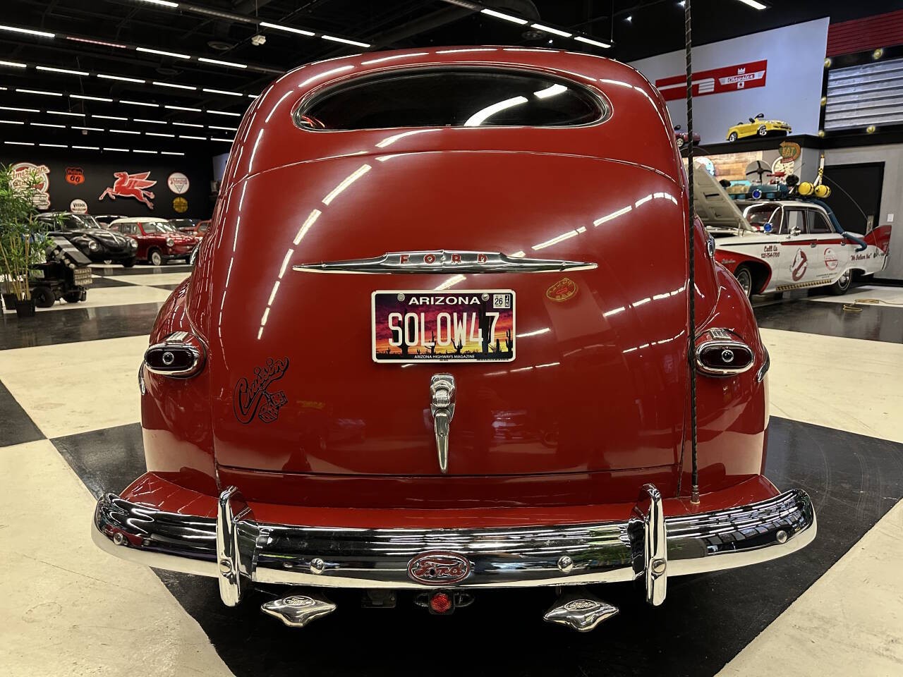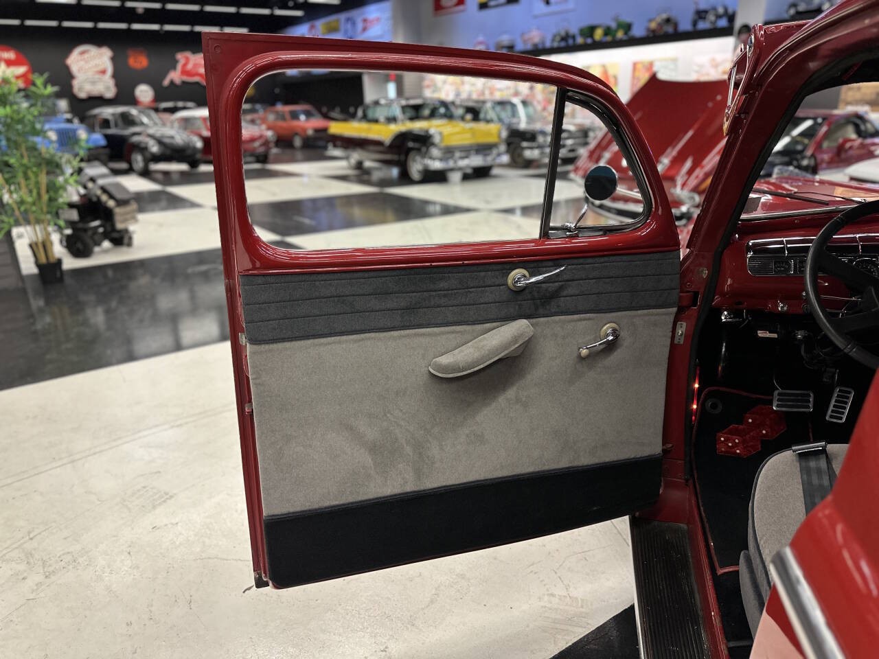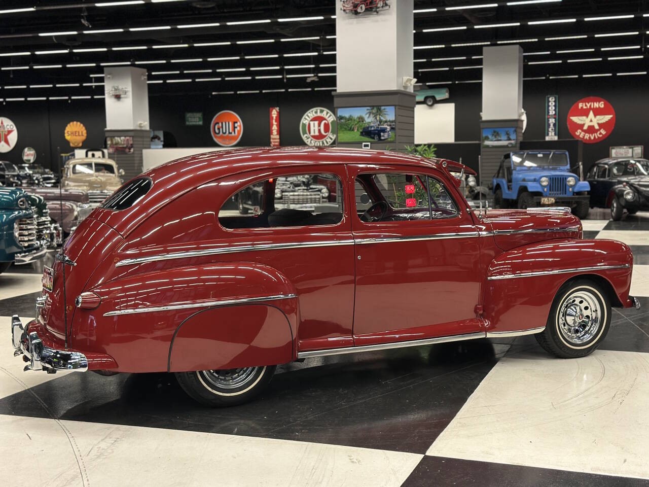 Offered for sale is a stunning 1947 Ford Deluxe, a true piece of American automotive history that blends classic styling with modern performance and comfort. This beautifully restored and thoughtfully upgraded Ford has been meticulously maintained and is currently showcased in a museum, a testament to its quality, presentation, and timeless appeal. Under the hood sits an updated V8 350 engine that runs exceptionally strong and smooth. The engine delivers reliable power and a confident driving experience, making this classic not just a showpiece but a vehicle meant to be enjoyed. Paired with a Turbo 350 Automatic transmission and B&M Shifter, shifting is seamless and dependable, whether cruising around town or stretching its legs on the open highway. This car runs and drives at highway speeds with no issues, offering peace of mind and true drivability that many vintage vehicles can't match. All Gauges Work and Updated CD Pioneer CD Player Sounds Great, Under Dash CB Radio works, Comfort has been carefully considered as well. The vehicle features updated air conditioning, allowing you to enjoy the car year-round without sacrificing comfort, even on warm days. The ride is smooth, stable, and enjoyable, making it suitable for long cruises, car shows, or weekend drives. The exterior is finished in a sweet red paint that perfectly complements the iconic lines of the 1947 Ford Deluxe. The color has excellent depth and shine, drawing attention wherever it goes and highlighting the car's classic curves and chrome accents. Inside, you'll find a nice, clean interior that reflects the same level of care as the exterior. Everything presents beautifully, offering a comfortable and visually striking cabin. Adding a modern custom touch, the car features custom lighting throughout, enhancing its appearance at shows and giving it a unique, eye-catching presence. This thoughtful detail sets it apart and elevates its overall presentation. This 1947 Ford Deluxe is the perfect blend of classic charm and modern upgrades--museum-quality looks with real-world drivability. Whether you're a collector, enthusiast, or someone looking for a standout classic you can actually drive, this vehicle is truly something special.