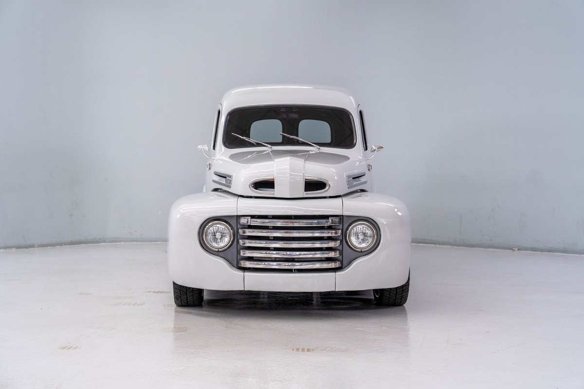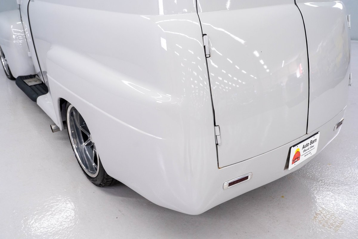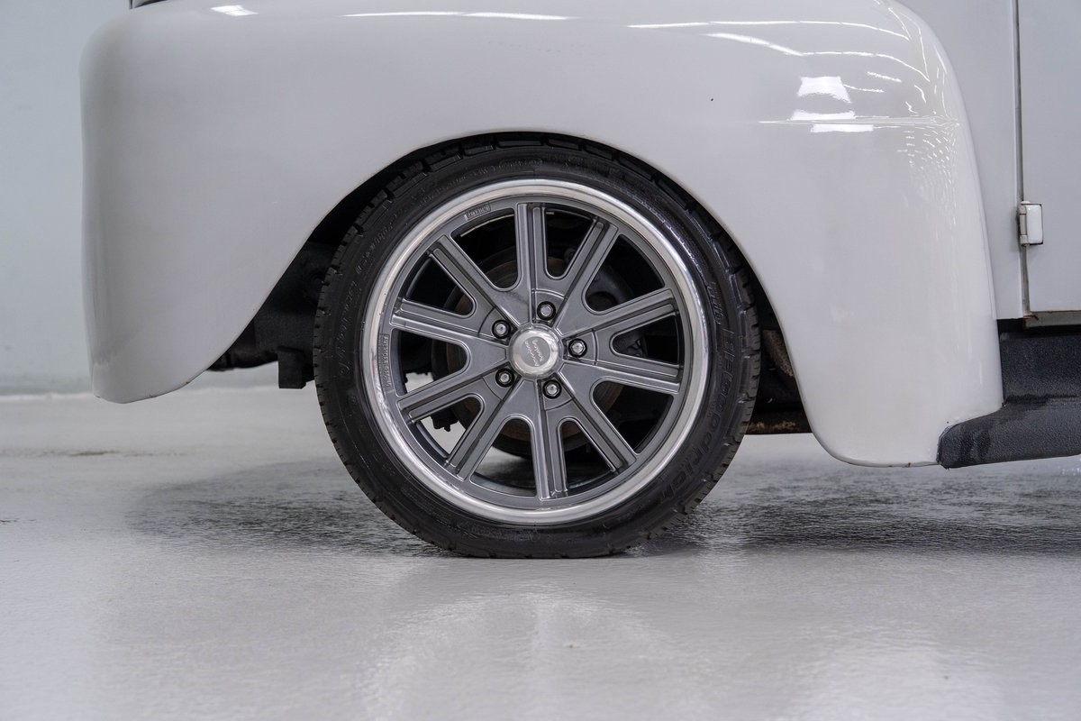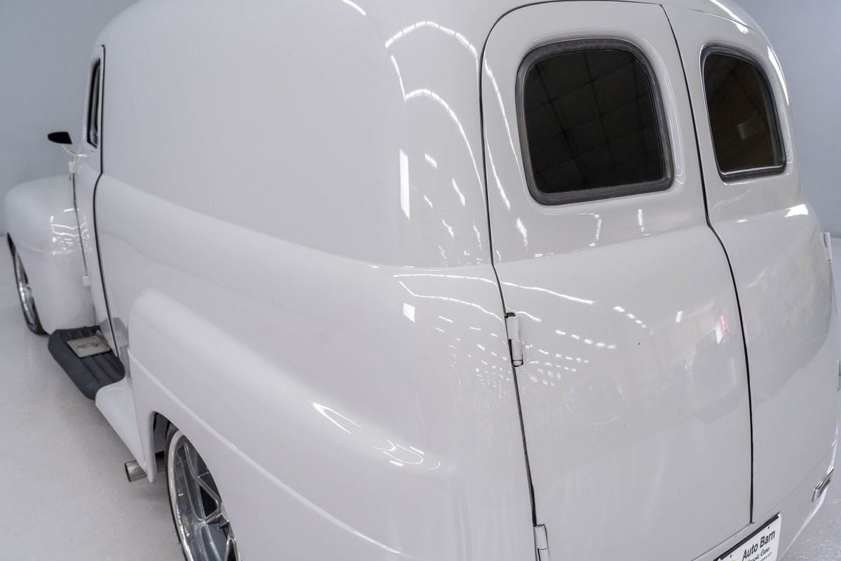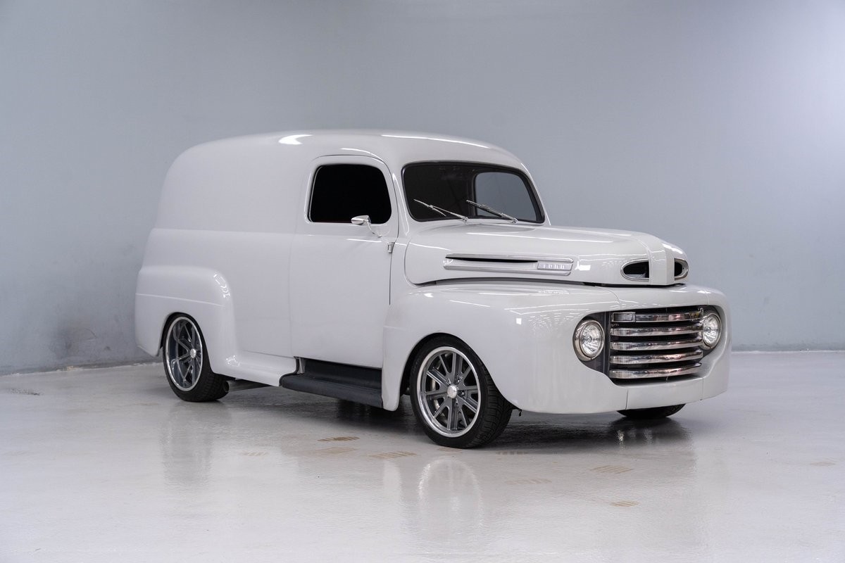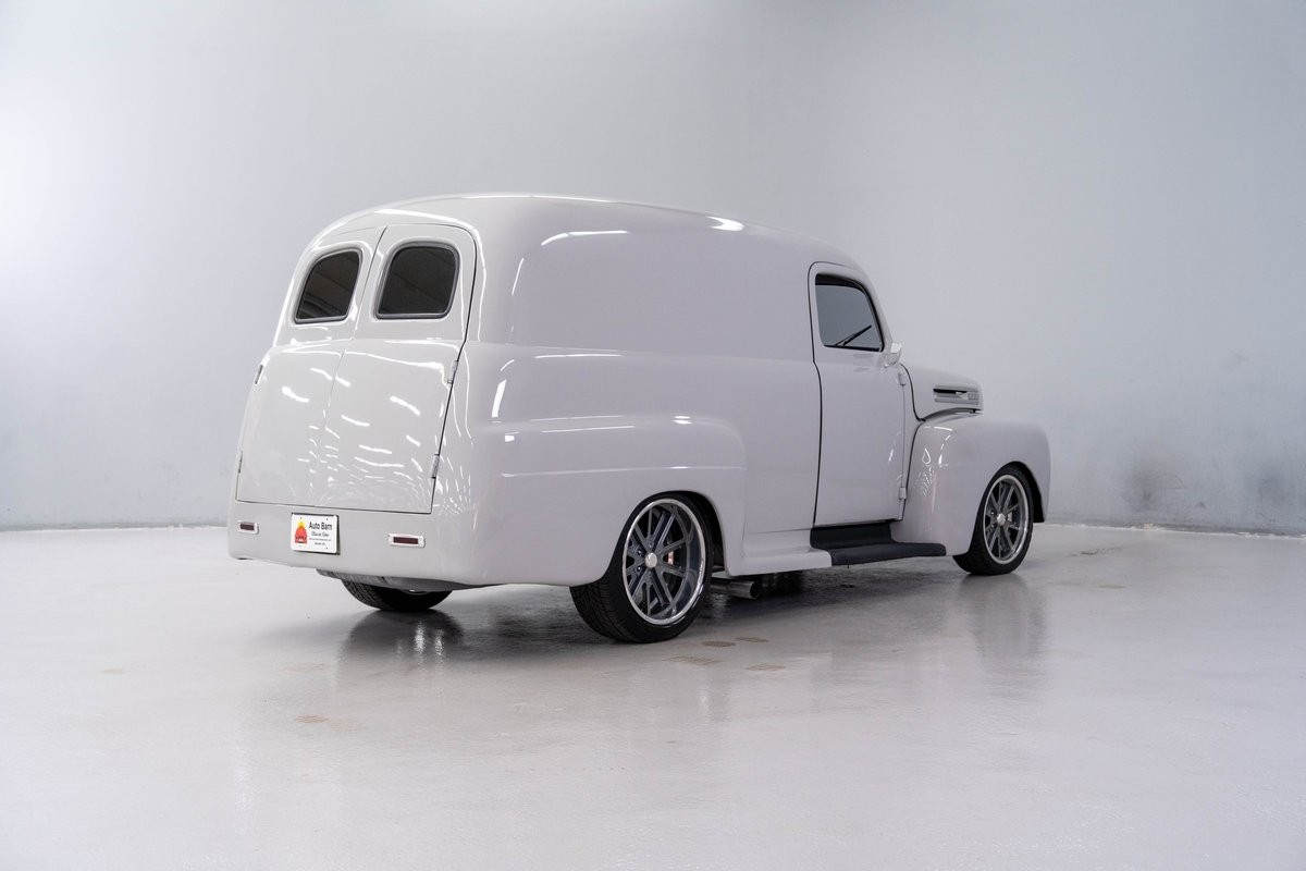 This solid 1950 Ford F-1 Delivery Panel was carefully restored in 2018 with an abundance of innovations. The body of this vintage hauler was properly prepped, and all unnecessary chrome, bumpers and door handles were removed. It was then professionally refinished in 2-stage Light Grey, a finish that is perfect for this application.