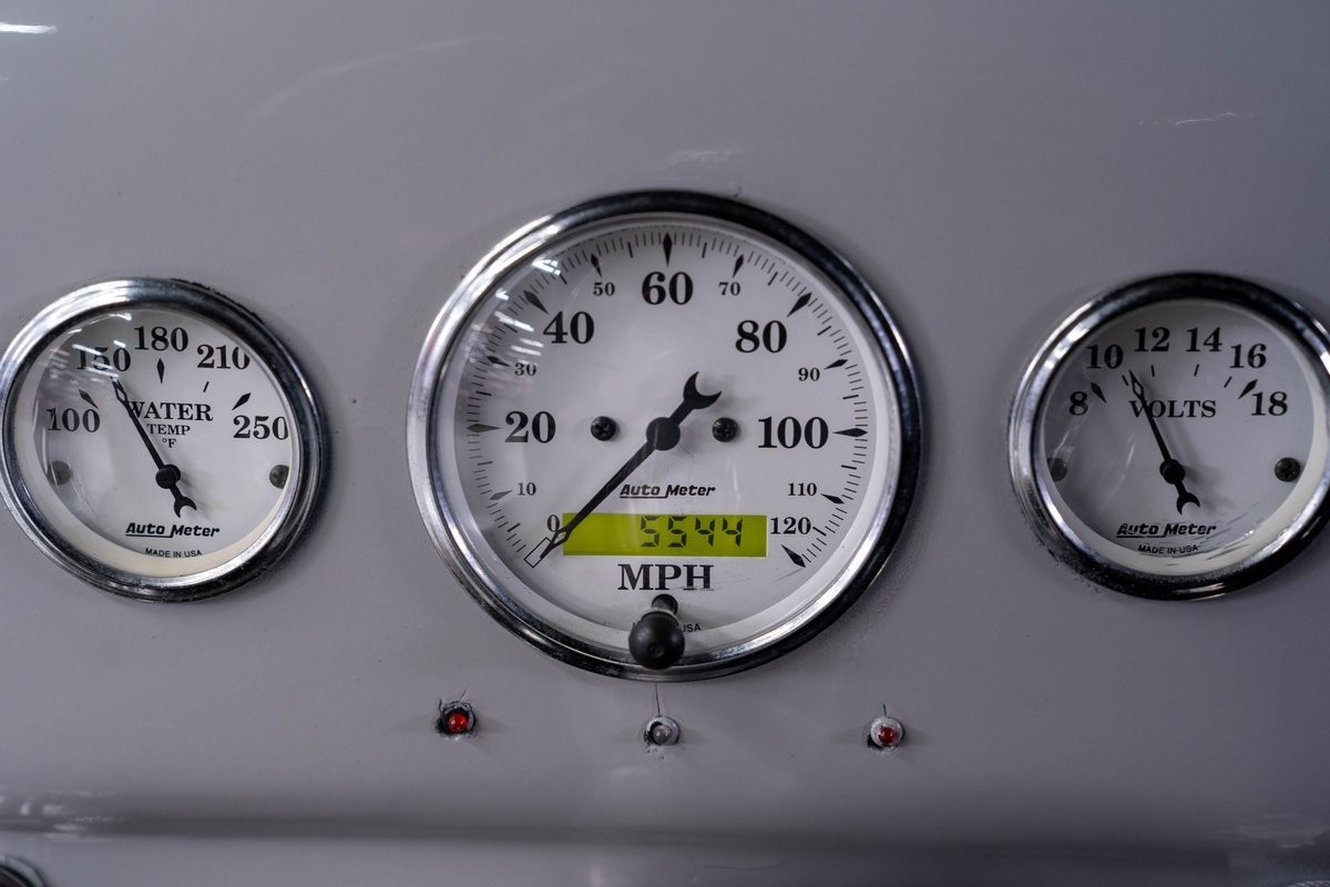 The engine compartment is home for a rebuilt (2018) Chevy 350 small block equipped with an Edelbrock RPM aluminum intake and 4V carb, mild cam and tube headers mated to a free-flowing exhaust. Electrics have been converted to 12-volt and an aluminum radiator with electric fan controls engine cooling. It is backed by a completely rebuilt GM TH350 3-speed automatic transmission and differential with 3.73:1 gearing. The chassis is equipped with power steering, power disc/drum brakes with dual master cylinder, new fuel cell and 2" hitch receiver.