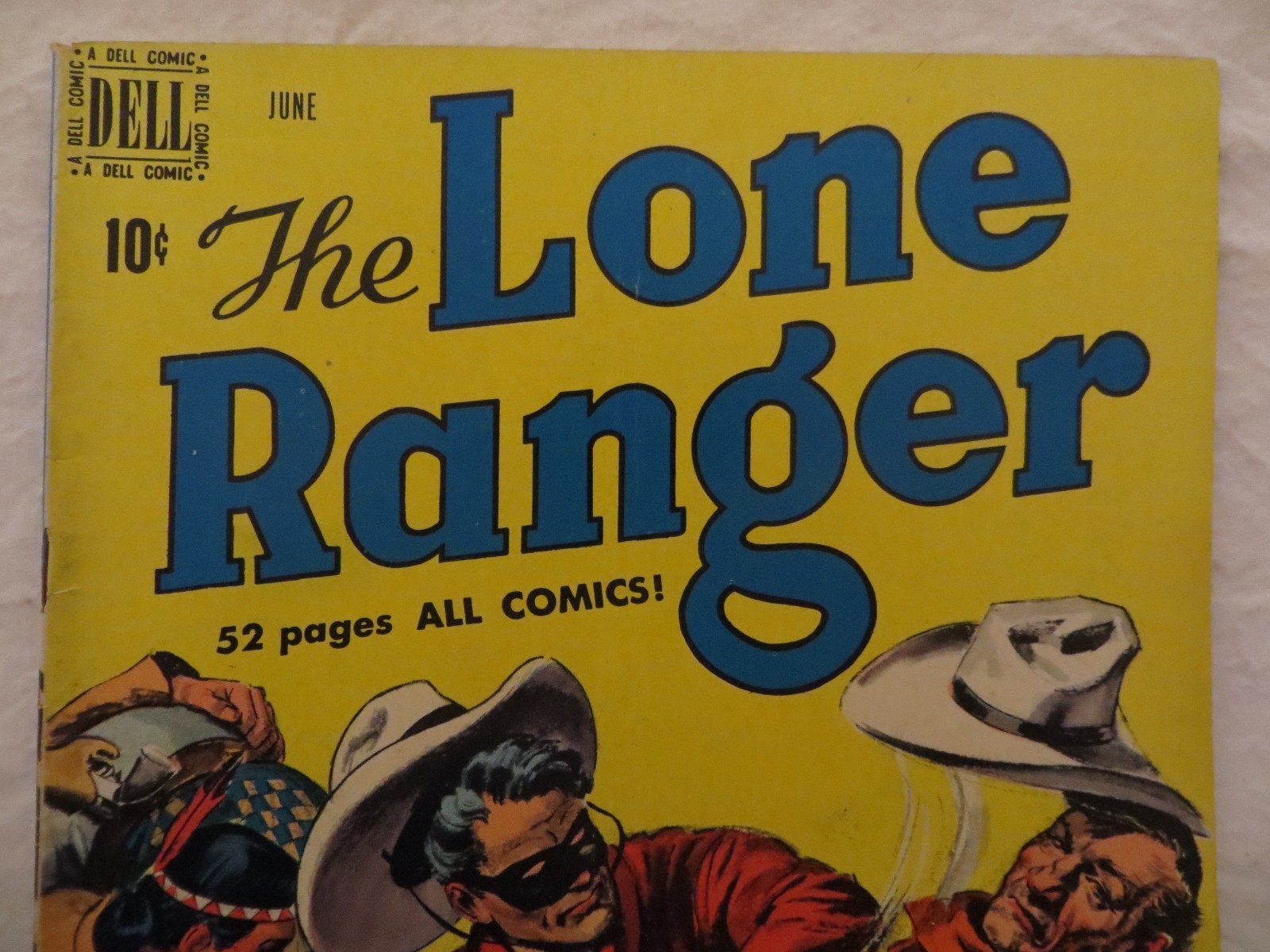 ......FRESH OUT OF MY PERSONAL COLLECTION OF COMIC BOOKS IS A 1950 LONE RANGER ISSUE!!!!......NO.24....HIGH-GRADE ISSUE FEATURING LONE RANGER, TONTO AND MORE!!!!!!.....I WILL BE LISTING MY COLLECTION SO KEEP AN EYE OUT FOR MORE CLASSICS....THIS BOOK IS COMPLETE WITH OFF-WHITE/ YELLOWING PAGES......NICE, SOLID CLASSIC COMPLETE AND GETTING HARDER TO FIND IN THIS CONDITION!!!!.....I WILL COMBINE MULTIPLE ITEMS FOR A SAVINGS...BUYER PAYS ACTUAL SHIPPING COST PLUS A $3.00 HANDLING FEE FOR YOUR ENTIRE PURCHASE....THANK YOU FOR BIDDING!!!!