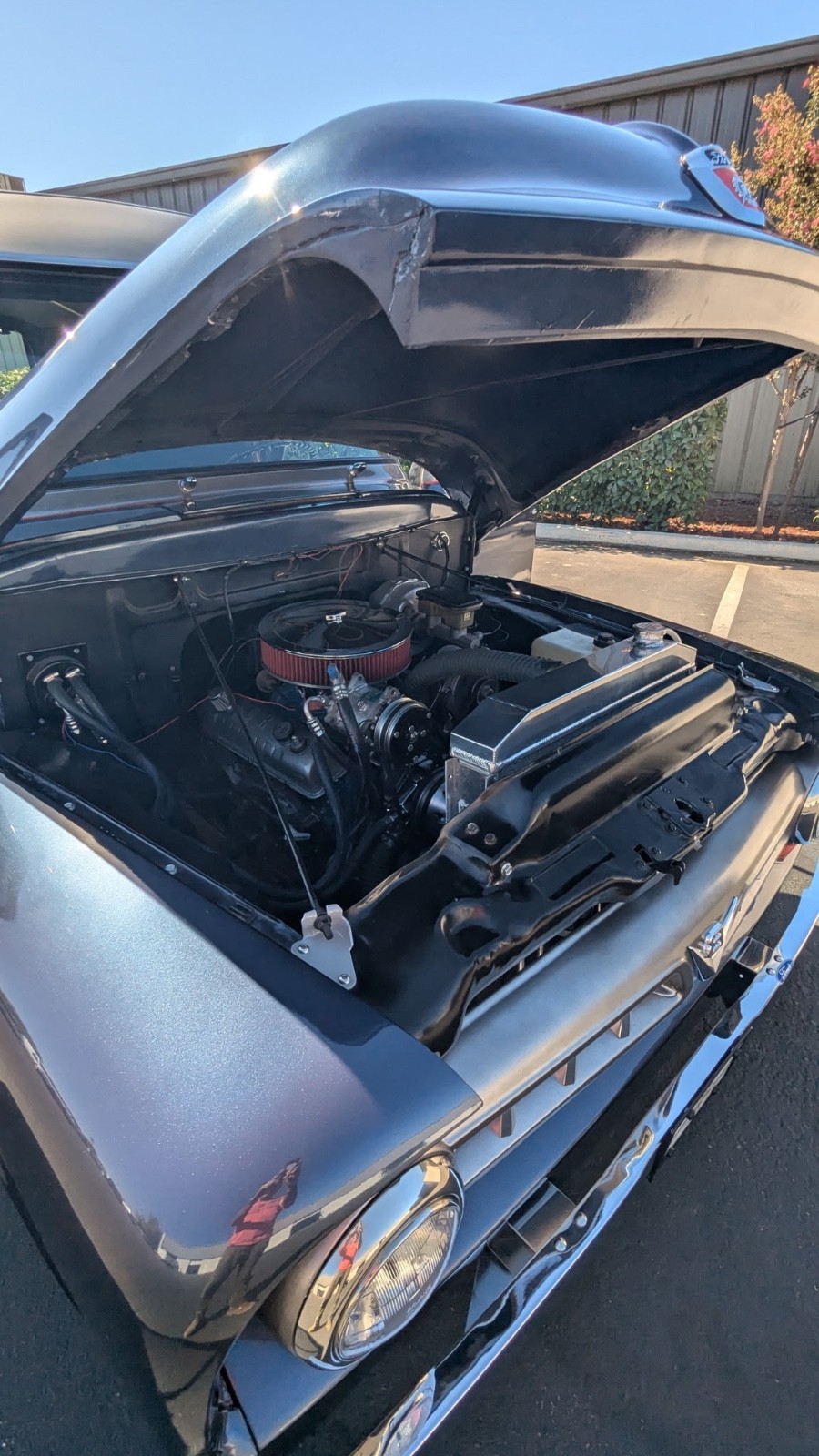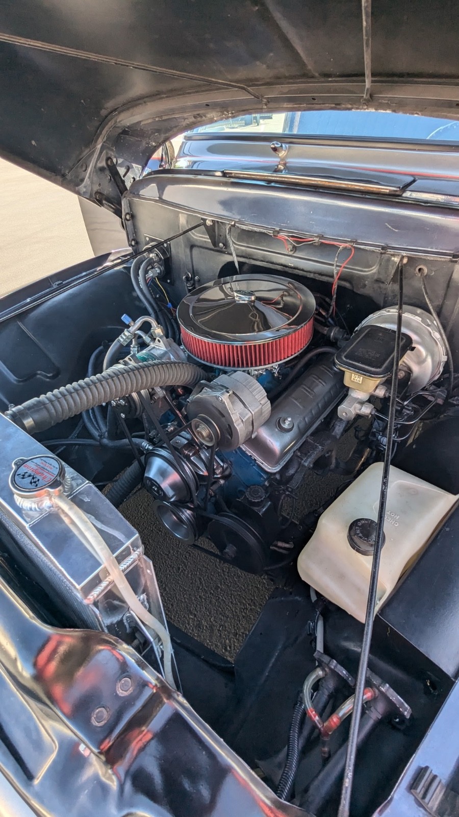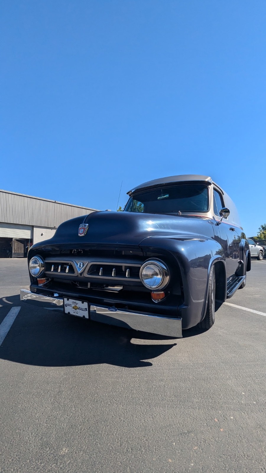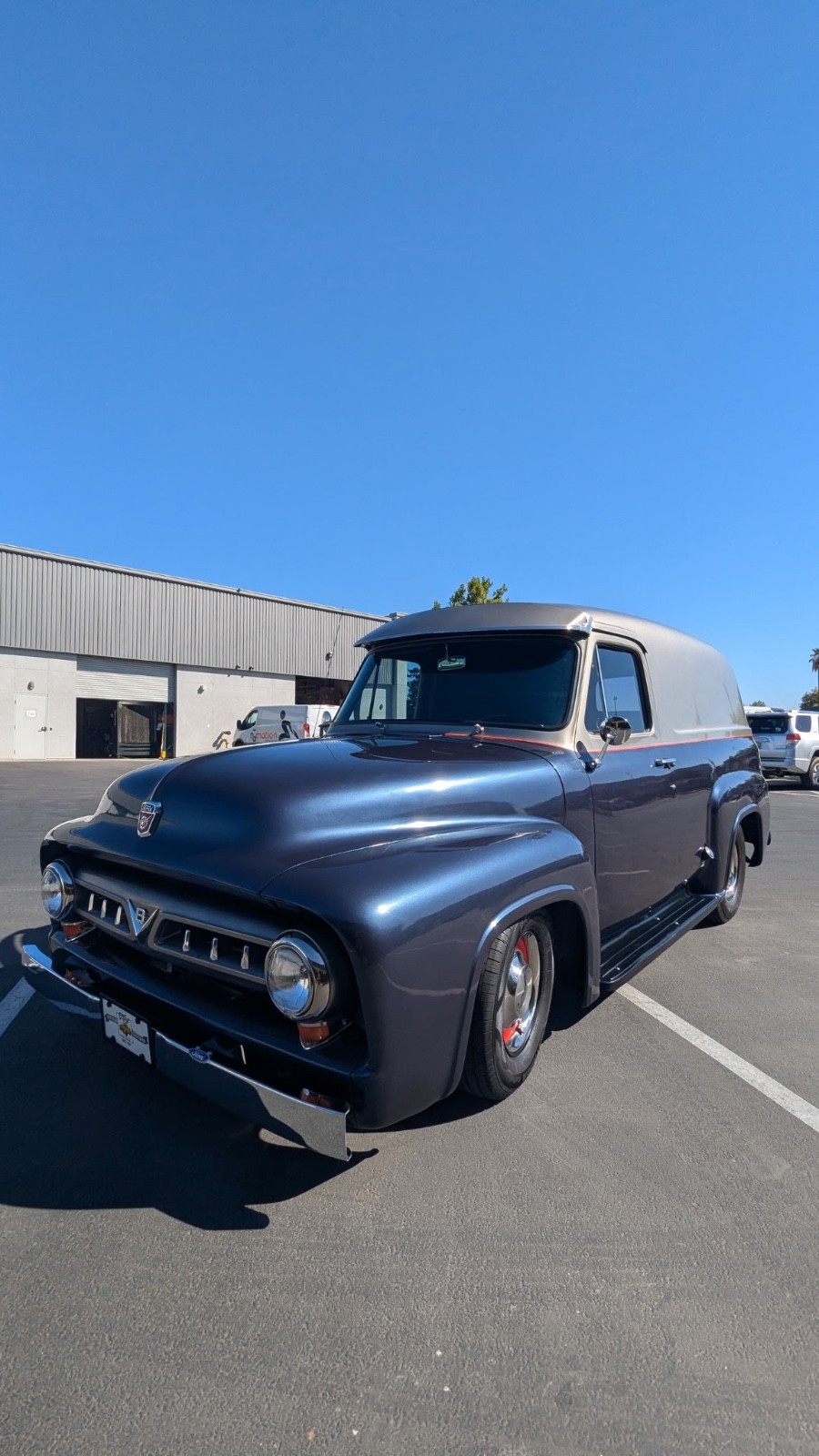 1953 Ford Deluxe Custom Panel with Mustang II front suspension. Has GMC 350 V8 and with automatic transmission. Disc brakes up front with GMC rear end with drum brakes in rear. Vintage AC/Heater. Custom rear bumper with tow hitch. Custom front visor. Custom interior with oak bed flooring with chrome strips and sides and headliner panels with wood trim. Rewired to 12 volt system with custom gauges (all electrical systems in good working condition). New aluminum radiator. New tires. Power brakes with new rear wheel cylinders. Overhead stereo with new stock bench seat and new carpet. Deluxe V8 Grille and stainless front bumper. Tilt wheel. This is rare classic truck that runs and drives GREAT!! Lots of time and money put into to this build. Serious buyers may call owner (Al) at (559) 916-4604 for more info. WATCHERS “WATCH” SERIOUS IN THE KNOW COLLECTORS “ BID & BUY “ when they see a great deal!!!