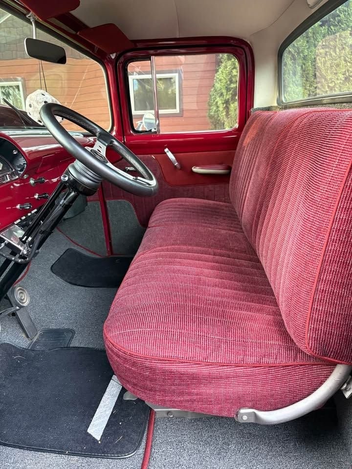 This 1956 Ford F100 Truck is a showstopping example of a fully restored classic pickup. It features a beautiful deep burgundy exterior paired with a matching red interior, showcasing exceptional craftsmanship and attention to detail throughout. The wood bed with polished metal strips adds a timeless touch to its presentation. Mileage is estimated at 5,000 miles since the engine was rebuilt. This truck runs strong, shifts smoothly, and is ready to cruise or show. Always garage kept and meticulously cared for, it stands as a true piece of American automotive history.