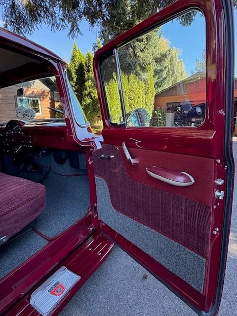 This 1956 Ford F100 Truck is a showstopping example of a fully restored classic pickup. It features a beautiful deep burgundy exterior paired with a matching red interior, showcasing exceptional craftsmanship and attention to detail throughout. The wood bed with polished metal strips adds a timeless touch to its presentation. Mileage is estimated at 5,000 miles since the engine was rebuilt. This truck runs strong, shifts smoothly, and is ready to cruise or show. Always garage kept and meticulously cared for, it stands as a true piece of American automotive history.