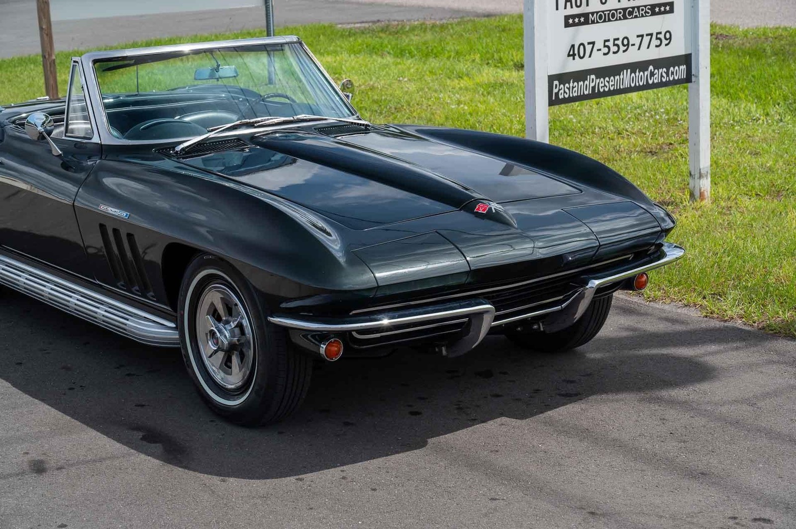 1965 Chevrolet Corvette Convertible, Born a Real Fuel Injection Car, 4-Speed, Glen Green This 1965 Chevrolet Corvette Convertible is a rare and desirable example of mid-year Corvette history. With believed to be 45,419 original miles, this car is documented as a real Fuel Injection Corvette, complete with the correct tachometer, emblems, and the proper components unique to these cars. The car currently features a correct-dated CE warranty replacement engine that has been built to 340 HP specifications. While the original fuel injection unit is no longer with the car, it retains everything else correct for a factory fuel injection model, including the proper heads and details. Finished in its correct factory color code 900GG Glen Green Metallic, the paint shows beautifully and highlights the car's iconic lines. The black bucket seat interior remains true to its original look, providing the perfect contrast to the Glen Green exterior. This Corvette is equipped with its factory 4-speed manual transmission, making it an engaging and authentic driving experience. The car runs and drives excellent, with a strong engine, smooth shifting transmission, and that unmistakable Corvette feel. The chrome bumpers show age and are not as nice as the rest of the car, but overall, this is a very well-presented example with excellent paint and solid integrity throughout. A true piece of Corvette history, this 1965 Fuel Injection Convertible is a collector's dream a rare opportunity to own a genuine Fuel Injection car with its original details intact. While we do our best to provide the highest quality muscle cars with an honest and reliable description and realize the importance of transparency when selling vehicles. That being said, we have not built, modified, changed or personally owned this vehicle. Whether this vehicle is consigned or owned by Past & Present Motor Cars we do not know the vehicles complete history since new. We want to be clear and try to answer any questions our customers might have prior to purchasing. Additionally, we not only welcome but we encourage 3rd party independent inspections. Please inquire prior to purchase to make sure the advertised vehicle has not already been sold. We list our vehicles on multiple websites and a vehicle can sell at any time. If a customer chooses to purchase sight unseen (many of our customers choose this option) the customer accepts the vehicle AS IS and WHERE IS and understands we cannot address concerns after purchase. For this reason, it's important all concerns are addressed prior to purchase. We make every effort to present accurate and reliable information, but use of this information is voluntary, and should only be deemed reliable after an independent review of its accuracy, completeness, and timeliness. It is the sole responsibility of the customer to verify the existence of options, accessories and the vehicle condition before time of sale. Financing is Available with low rates and Vehicle Shipping is available from our Showroom to your Garage. A Classic Car Warranty is Available for Purchase from a 3rd Party. Please speak to our Sales Associate or Company Representative for more information. Our team is working and available anytime by Phone or Text for your convenience at 407-559-7759. Thank you for your interest!