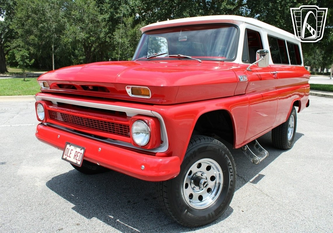 Gateway Classic Cars of Orlando is proud to digitally present this stunning 1965 Chevrolet Suburban CarryAll, a classic embodiment of American automotive history. This iconic vehicle is a true testament to the era of robust design and engineering, featuring a striking red exterior that captures attention wherever it goes. The bold color is complemented by a refined gray cloth interior, offering a comfortable and stylish ride for both driver and passengers.