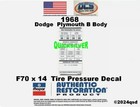 1968 Charger Super Bee R/T road runner GTX F70x14 Tire Pressure Decal NEW MoPar