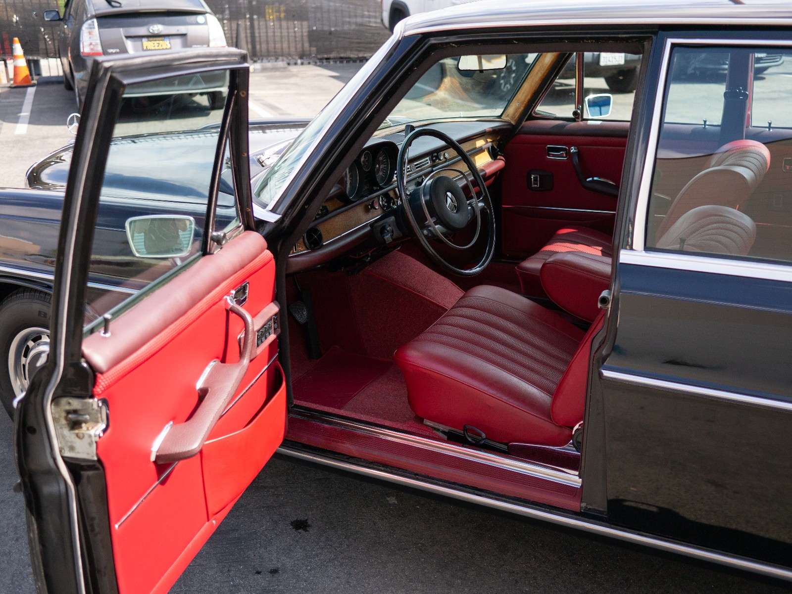 The 1968 Mercedes-Benz 250s is a classic sedan with a striking red interior and sleek black exterior. This left-hand drive vehicle features a clean title and runs on gasoline, making it a desirable option for car enthusiasts looking for a vintage gem. With its iconic Mercedes-Benz make and model, this car exudes luxury and style, perfect for those who appreciate the charm of classic cars from the late 1960s.