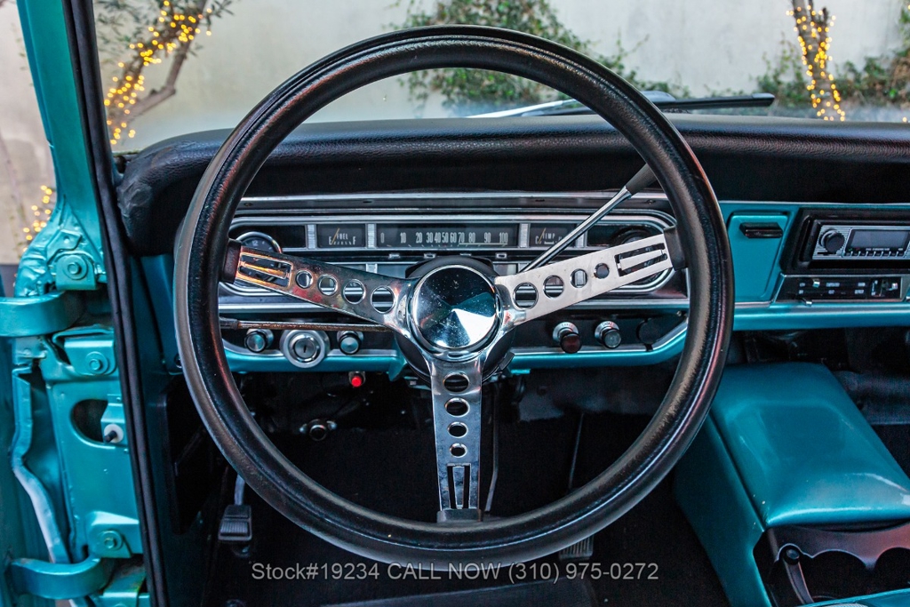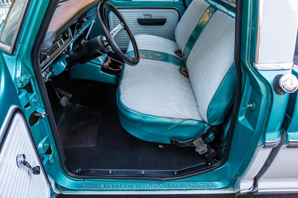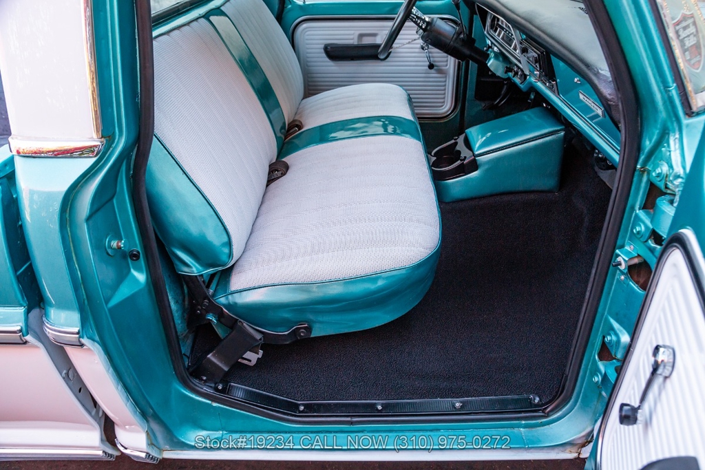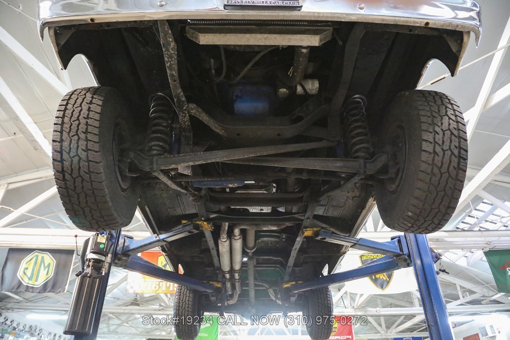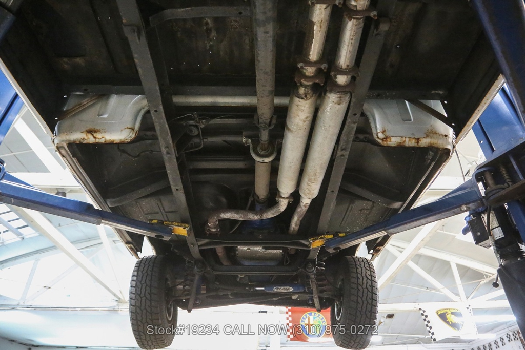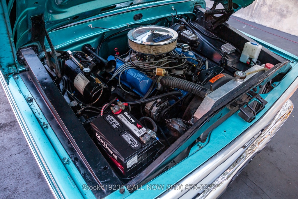 Equipped with an automatic transmission and a capable V8 engine topped with an Edelbrock 4-barrel carburetor. It includes power steering for ease of driving, along with drum brakes on all four wheels. Exterior styling features include distinct "Ranger" badging, chrome trim, chrome bumper, 15-inch steel wheels, and Ironman tires. Inside, convenience features include a comfortable bench seat, lap belts, an aftermarket center console, a glove box, an analog clock, and a fender-mounted antenna.