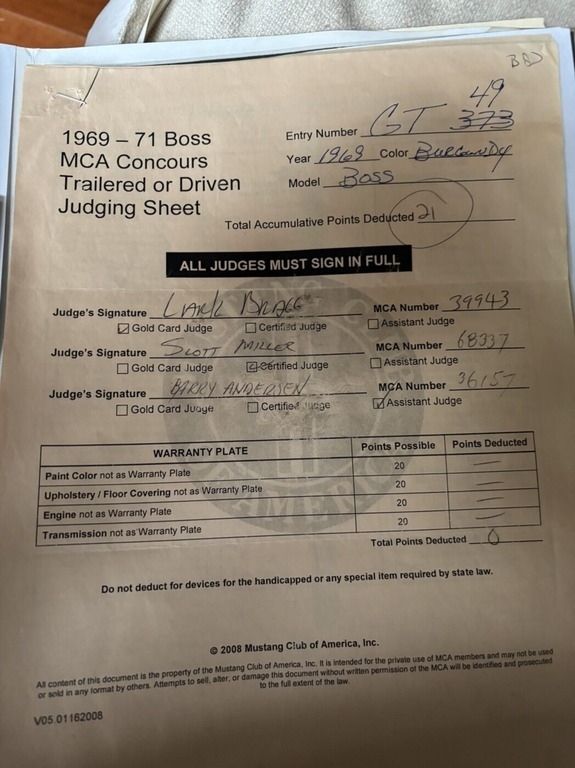 “This 1969 Boss 429 is an exceptional example of one of Ford’s most iconic muscle cars. Previously a show car and magazine feature, it remains in absolute show-quality condition throughout. The car is powered by a date-code-correct, unstamped 429 big-block service block, built with authentic Ford Boss performance components. It has been dyno-tested at an impressive 600 horsepower. Despite the power, it runs on pump gas with 10.5:1 compression and has excellent street manners. Included in the sale is the car’s “sister” engine from another Boss 9—complete with the original smog components that were on the car during its show career. This additional show motor is fully complete and currently disassembled for inspection, allowing full review of its NASCAR internal components. During my ownership, the car has been driven fewer than 200 miles, only to and from local shows. Documentation includes the build sheet, Mustang Club of America judging certificates, and the Marti Report. A truly special Boss 429 that looks, runs, and drives exactly as a top-tier showpiece should.”