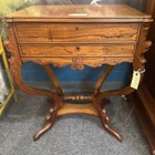 Antique Victorian Wooden Sewing Table Drop-Leaf Drawer Brass Pull Brown