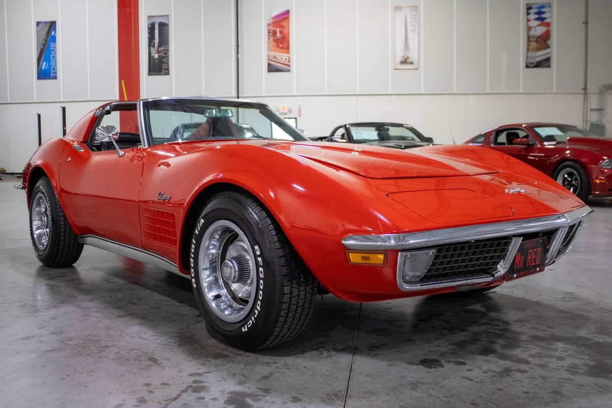 This 1971 Chevrolet Corvette presents in a striking red exterior over a black interior, showing just 47,000 miles on the body and only 11,700 miles on the engine since its rebuild. Retaining its original wheels, the car wears a fresh set of BFGoodrich tires that complement its classic stance. Well cared for and tastefully updated, this Corvette blends originality with extensive mechanical and cosmetic improvements, making it an excellent driver and a strong long-term investment.