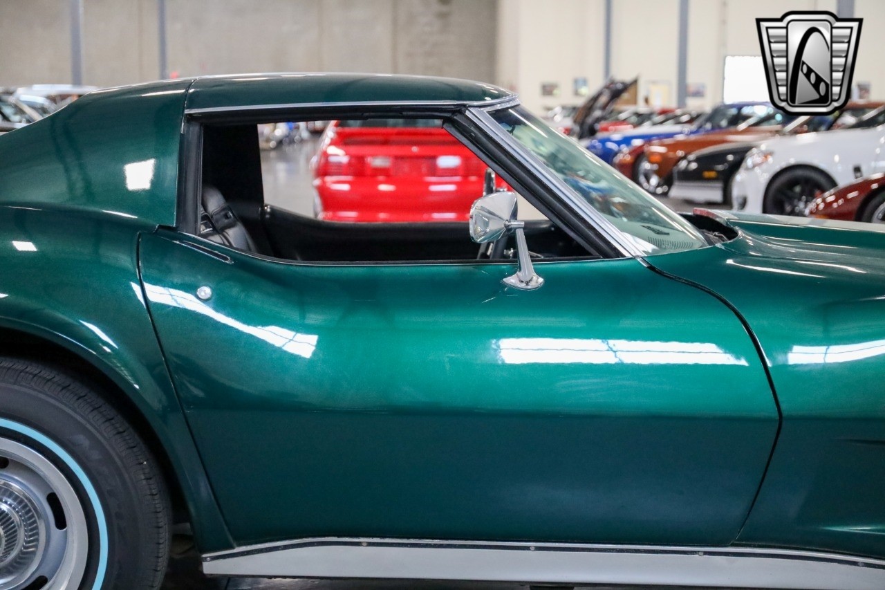 Gateway Classic Cars of San Antonio/Austin is excited to present this 1973 Chevrolet Corvette. This iconic sports car is presented in a striking green exterior that captures the essence of its era, complemented by a sleek black vinyl interior that exudes timeless style. Under the hood, you'll find a robust 350 CID V8 engine paired with an automatic transmission, offering a driving experience that is both powerful and smooth. This Corvette is equipped with a range of features designed to enhance your driving pleasure. Enjoy your favorite tunes with the built-in AM/FM radio, providing the soundtrack for your journey. The power steering and power brakes ensure a comfortable and controlled ride, making every drive a pleasure. Safety is also a priority, with seatbelts included for added peace of mind. One of the standout features of this Corvette is its T-tops, which allow you to enjoy open-air driving whenever the mood strikes. The classic white wall tires add a touch of elegance to the vehicle's overall appearance, complementing its vintage charm. Whether you're a collector or simply an enthusiast of classic cars, this 1973 Chevrolet Corvette offers a unique opportunity to own a piece of automotive history..