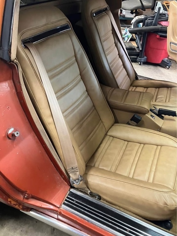 Owner's Notes: “Have performed much work on her overtime. This is a survivor with numbers matching drive train. Best guess to actual mileage 65,785 since I had to replace the speedometer (needle fell off). The 422 code for trim indicates a leather dark saddle, but I've recovered the seats in vinyl and in a medium saddle and the color is repeated in the rest of the interior. Car could use a paint job other than that it runs and drives great."