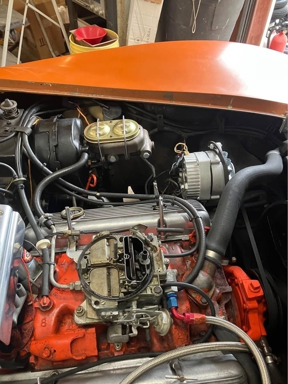 This Corvette is powered by a 350ci L82 V8 engine paired with a 4-speed manual transmission. This Classic performance car has approximately 65,785 miles and is shown with an orange exterior and a medium saddle interior. This vehicle has been well-maintained and has undergone a lot of upgrades and new parts. Has been with the owner for over 30 years.