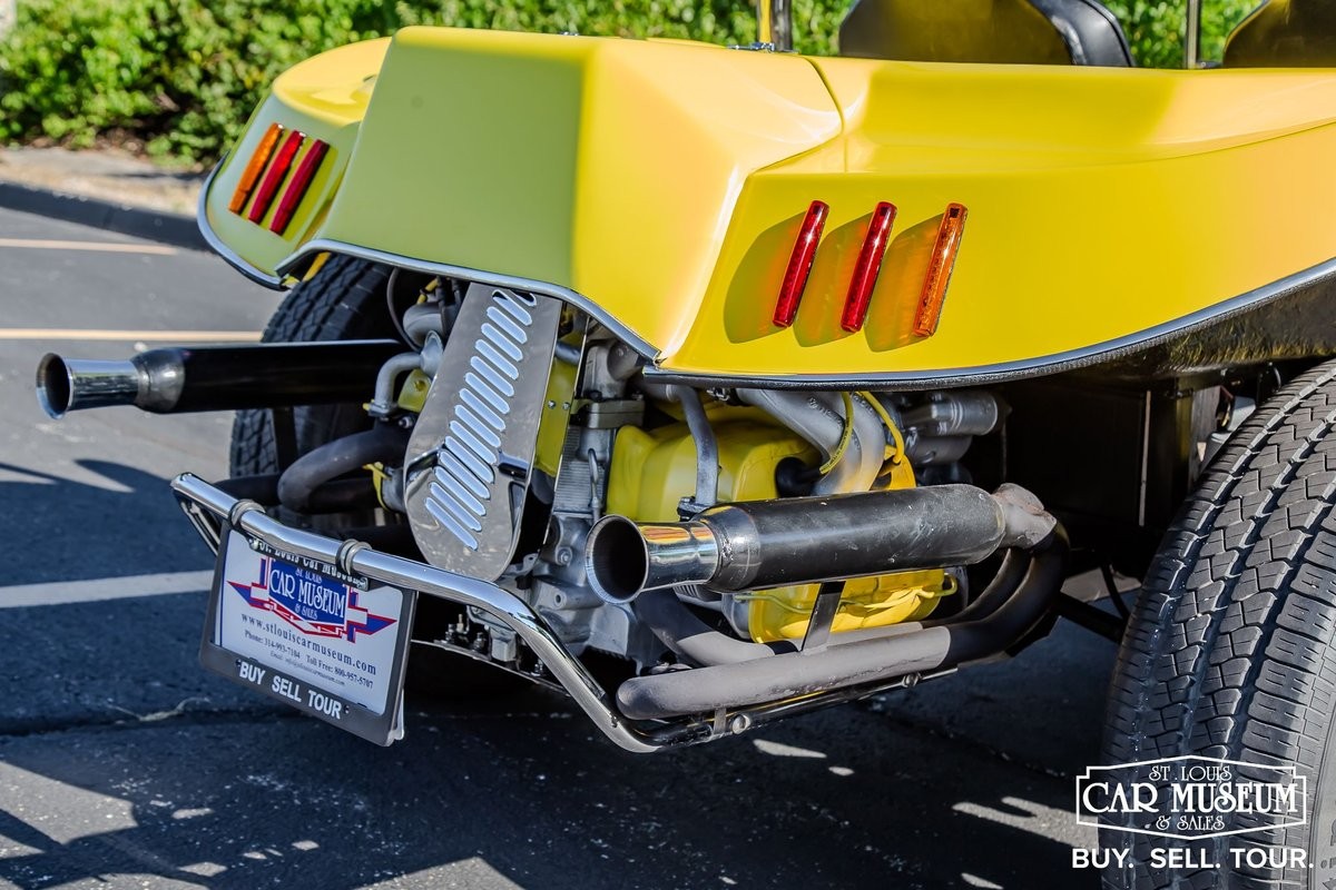 This special example was built by a Kansas City enthusiast in 2008 on a 1974 Volkswagen chassis in which it remains titled. The entire suspension, fuel delivery system, braking system, and 12-volt wiring were all new or rebuilt during the process. It now incorporates LED rear lights and turn signals, while retaining traditional chrome front end headlights and turn signals. A show bar and full buggy windshield bring the entire presentation together, riding on 5-lug alloy wheels with Continental 225/75R15 radial tires. We elected to replace all four KYB shocks, brake hoses, brake wheel cylinders, flush the brake system, rebuild the carburetor, change the engine oil, and install a new battery upon arrival to the museum. A superb running and driving dune buggy, and a real head turner when out on and streets! Act quickly on this one!
