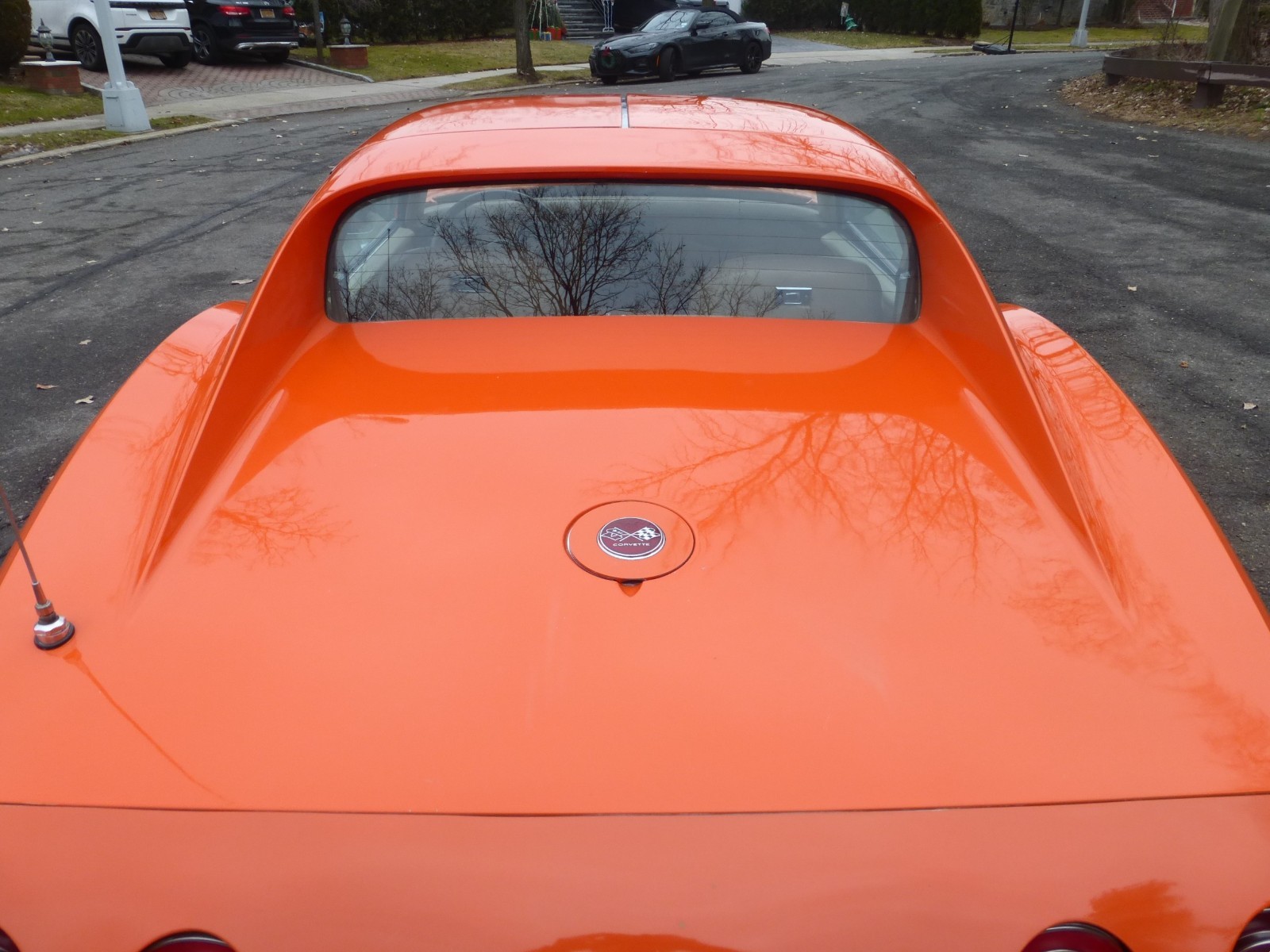 1976 Corvette C3 Stingray that runs and drives well. The car is in Orange Flame (70L) with a Buckskin Leather (642) interior. It is matching numbers L48 (180 HP) with automatic transmission. It is a low owner car that presents well. Paint appears to be original and is in good condition – paint has just a few scratches and chips. Bumpers appear to have been replaced. Interior also appears to be original and in good condition – seats are nice and the dashboard is clean. Carpets are showing age and could be refreshed. Mechanics are in good working order. Odometer shows 75,140 miles and are believed to be original. Engine starts easily and it runs smooth and strong. Transmission shifts nicely. Brakes and suspension will need to be refreshed. Headlights go up and down hydraulically. Underside is very clean and nice – frame is straight and solid. Car comes a second set of transparent T Tops (very desirable), shop manual, assembly manual, foot mats, extra stainless-steel valve covers and some books. Overall, this is a presentable C3 Corvette and with some minor attention can be made into a nice driver. More pictures and videos are available on our website. Visit us at Merit Cars.