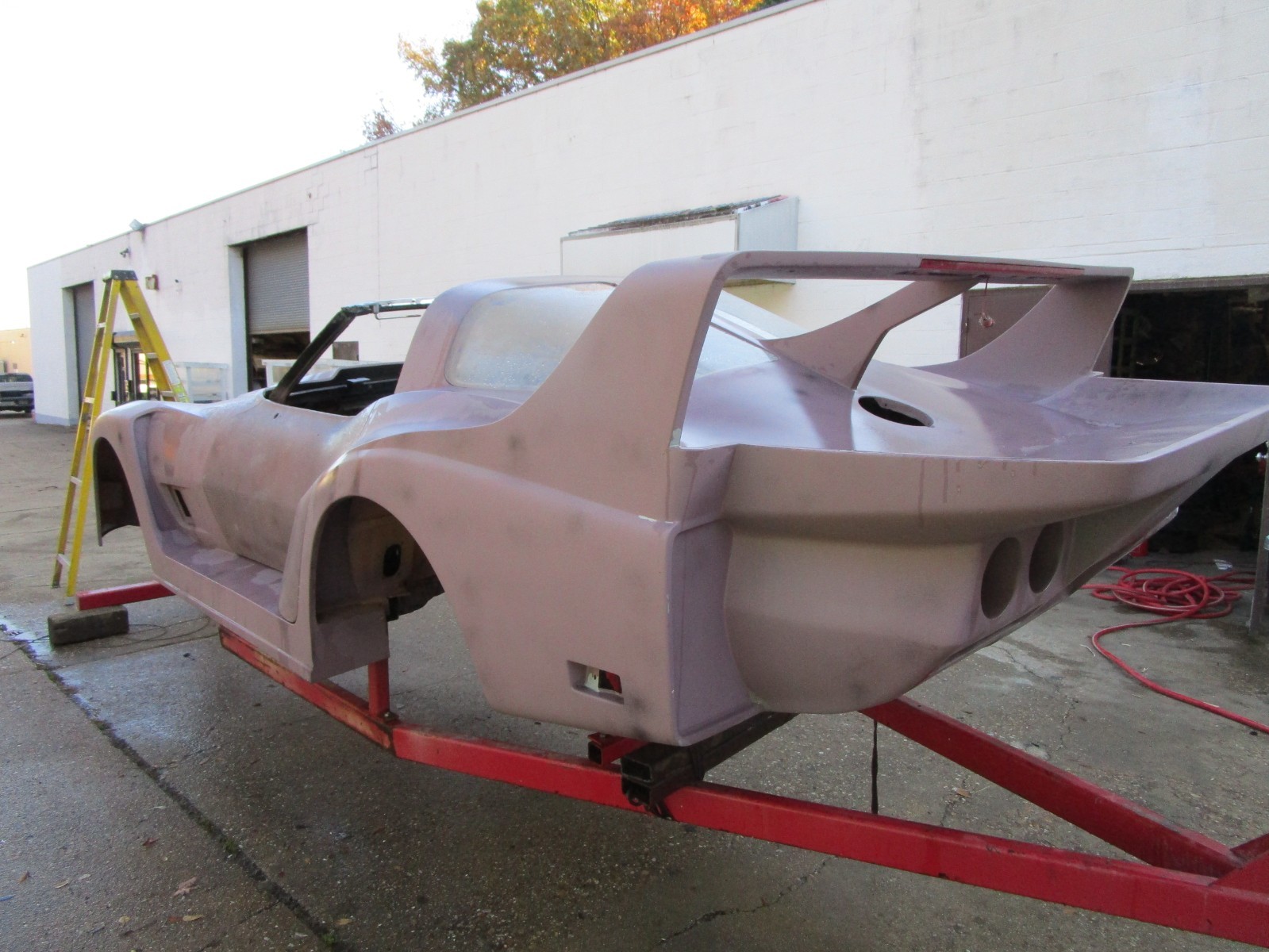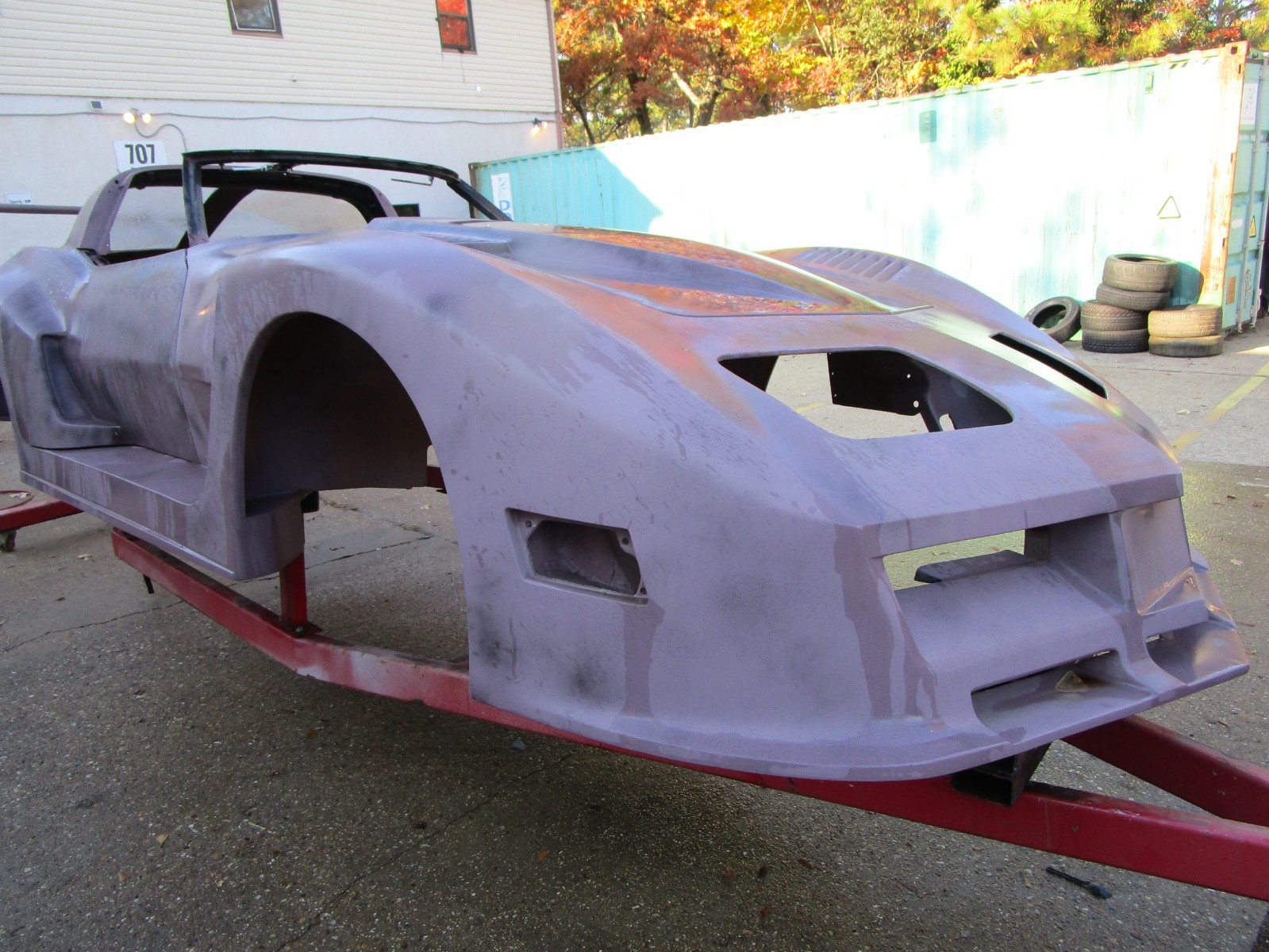 1979 CHEVROLET CORVETTE CUSTOM COUPE BODY. THIS CLEAR AND CLEAN TITLED 79 CORVETTE HAS BEEN CUSTOMIZED WITH A VERY HIGH QUALITY WIDE BODY FIBERGLASS KIT. COMES AS SHOWN WITH LEFT AND RIGHT BARE DOORS AND CUSTOM HOOD. GM VIN TAG. METAL BIRDCAGE AND WINDSHIELD FRAME ARE EXCELLENT. BODY WORK IS COMPLETED. EXCELLENT DOOR AND HOOD GAPS. CURRENTLY IN GRAY PRIMER WITH LIGHT BLACK GUIDE COAT. VERY CLOSE TO PAINT READY. LISTING INCLUDES LEFT AND RIGHT REAR SPLIT WINDOW PLEXI GLASS AND 4 SPEED PEDAL ASSEMBLY. DOES NOT INCLUDE ANY OTHER PARTS. SUPER HEAVY DUTY STEEL ROLLING ROTISSERIE STRUCTURE IS INCLUDED. MUST BE PAID FOR WITHIN 7 DAYS OF LISTINGS END AND MUST BE TRAILERED HOME FROM VA BEACH VA. GOTTA BE THE CHEAPEST CORVETTE SPLIT WINDOW ON EBAY HA HA!!!! THANKS FOR LOOKING. JESUS LOVES YOU!!!!!