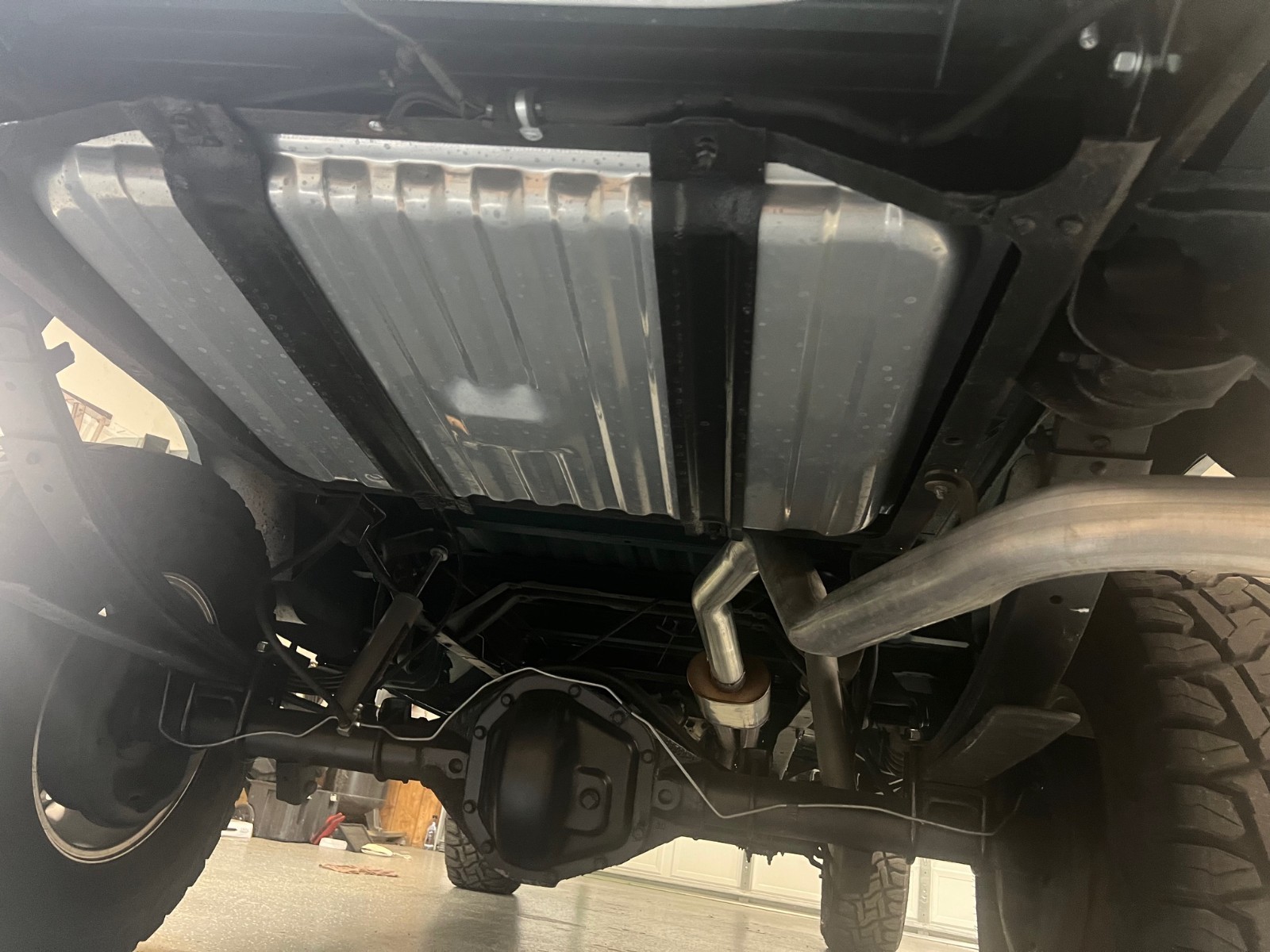 The bed has been coated inside and underneath with the painted bedliner spray