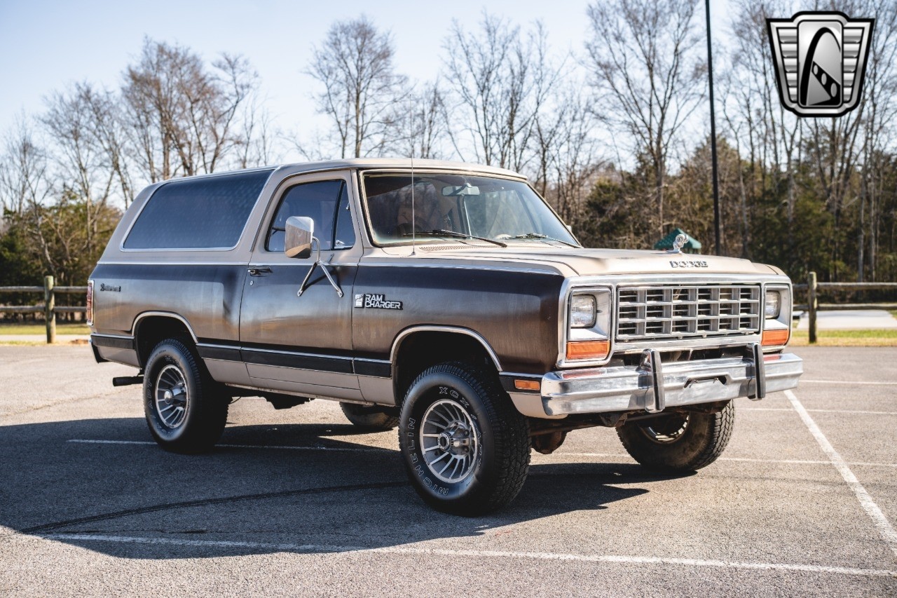 Gateway Classic Cars of Nashville is proud to digitally introduce this 1983 Dodge Ramcharger SE Prospector is a standout vehicle that captures the essence of early 80s automotive design. This model, with its distinctive beige and brown exterior, that is now what some people pay big money for "PATINA". The two-tone color scheme is complemented by the matching beige and brown cloth interior, creating a cohesive and inviting cabin atmosphere that reflects the era's style.