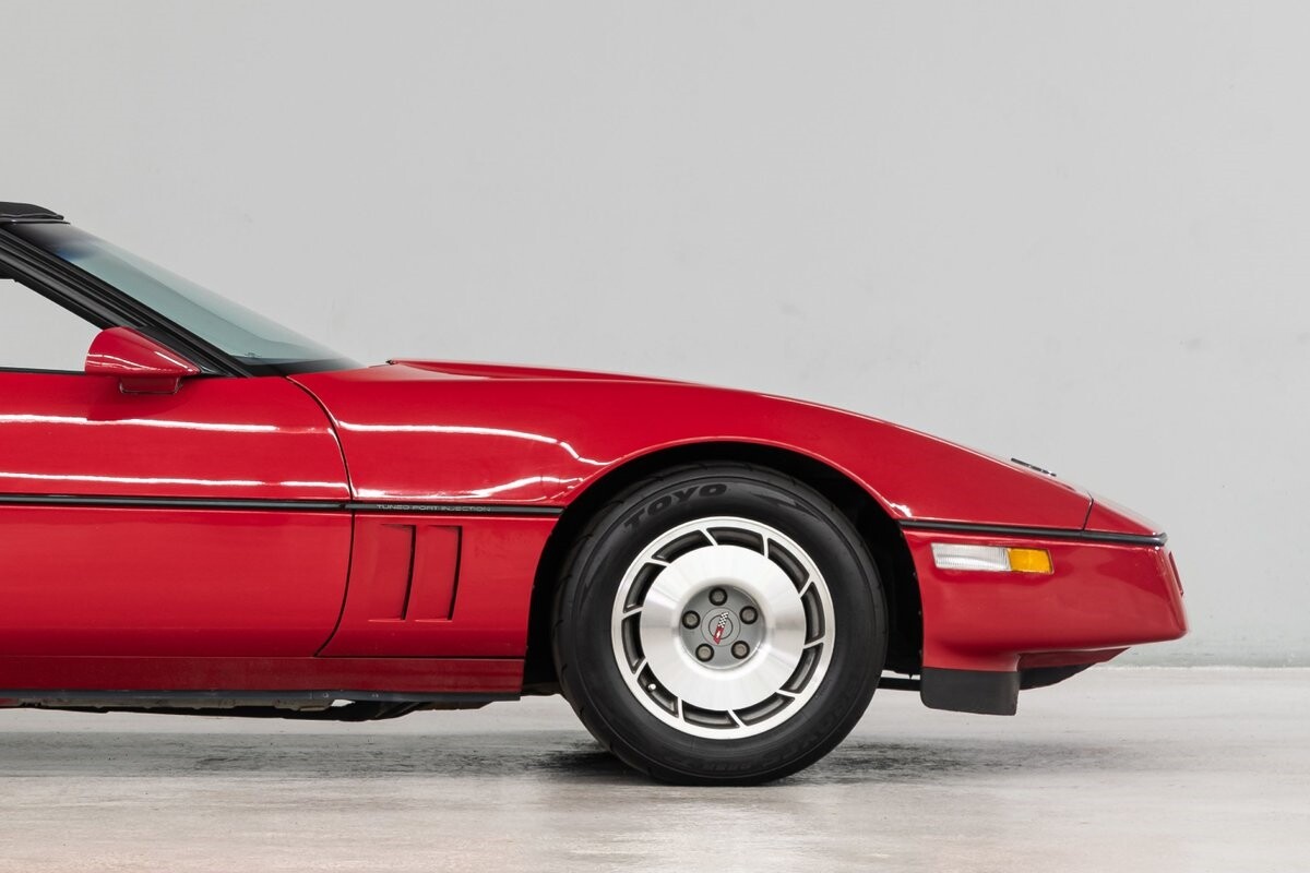 This 1987 roadster is a classic C4 in very good original condition. The factory Bright Red finish has been well cared for, and the optional Graphite leather interior shows only normal age wear. This Corvette has all the convenience features including electronic air conditioning, digital dash, 6-way power driver/passenger seat, power locks, power tinted windows and tilt/telescopic wheel. It is also equipped with a Delco/Bose AM/FM/Cassette sound system, anti-theft, cruise control and a manual soft-top in very good condition.