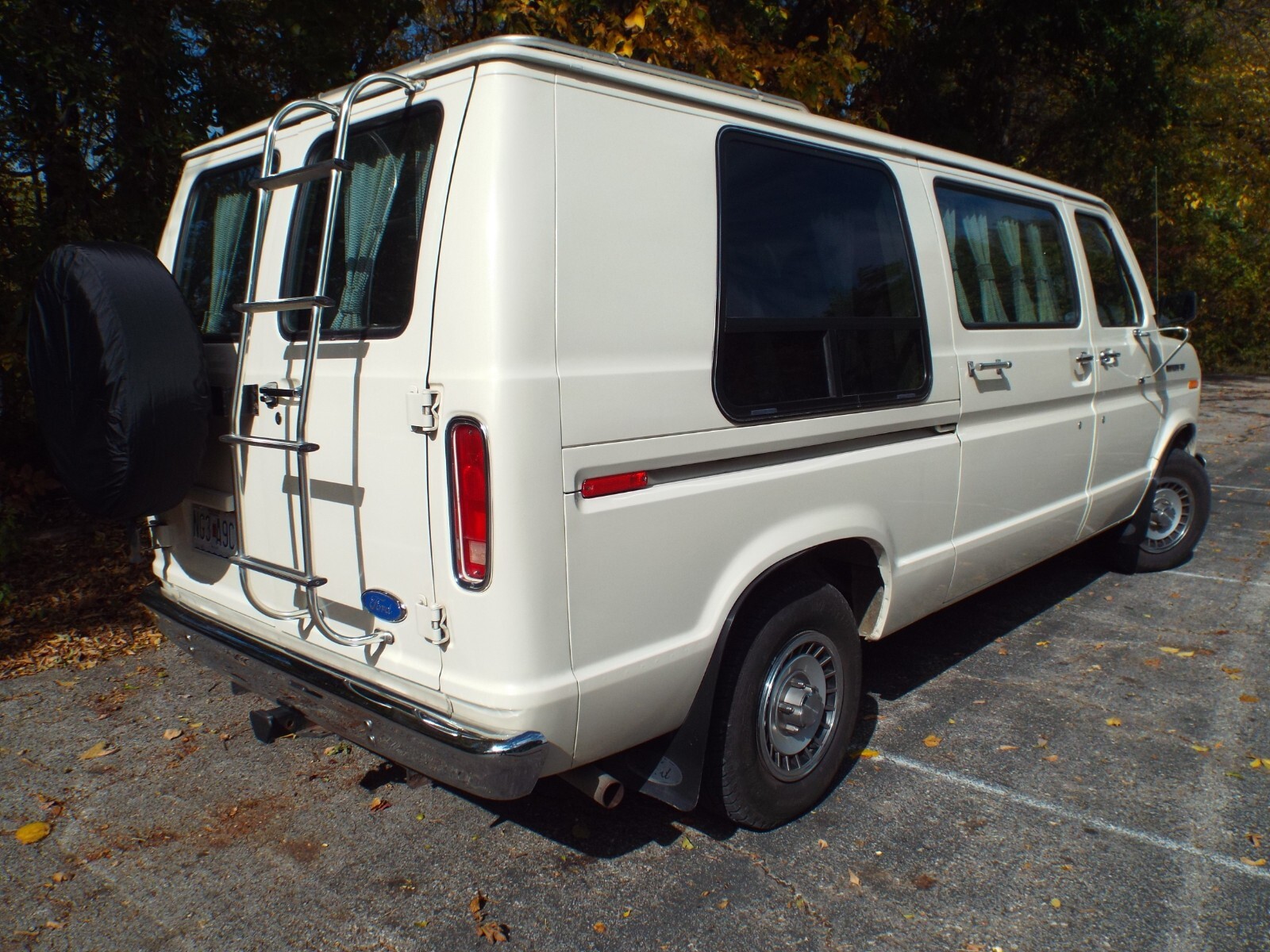 It has an Addco heavy duty rear sway bar, class III receiver trailer hitch, luggage rack, ladder, power windows and locks, cruise control, tilt steering column, dual fuel tanks, large side windows with sliding vents, 4 captain's chairs that recline and swivel, and a rear bench seat that folds down into a bed. The captains chairs in the middle and the rear bench seat unlatch and are removable for cargo.