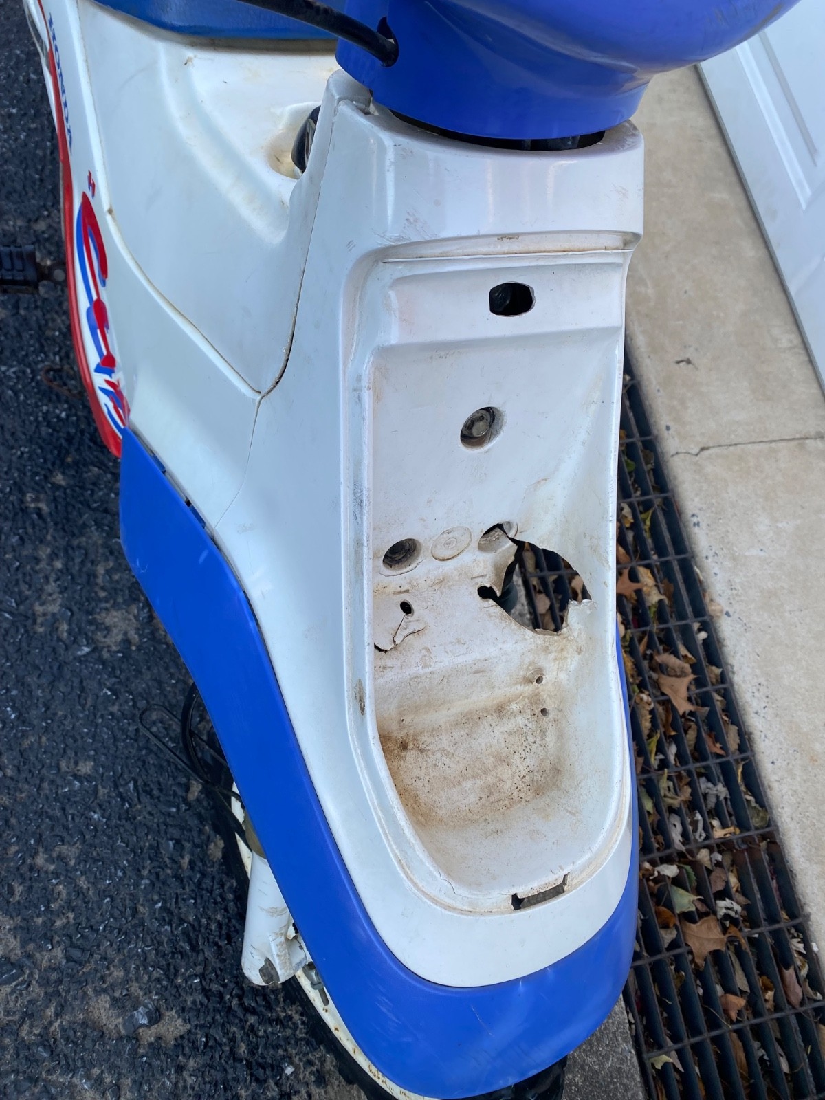 Front fender has hole and cracks under where hood piece would cover …