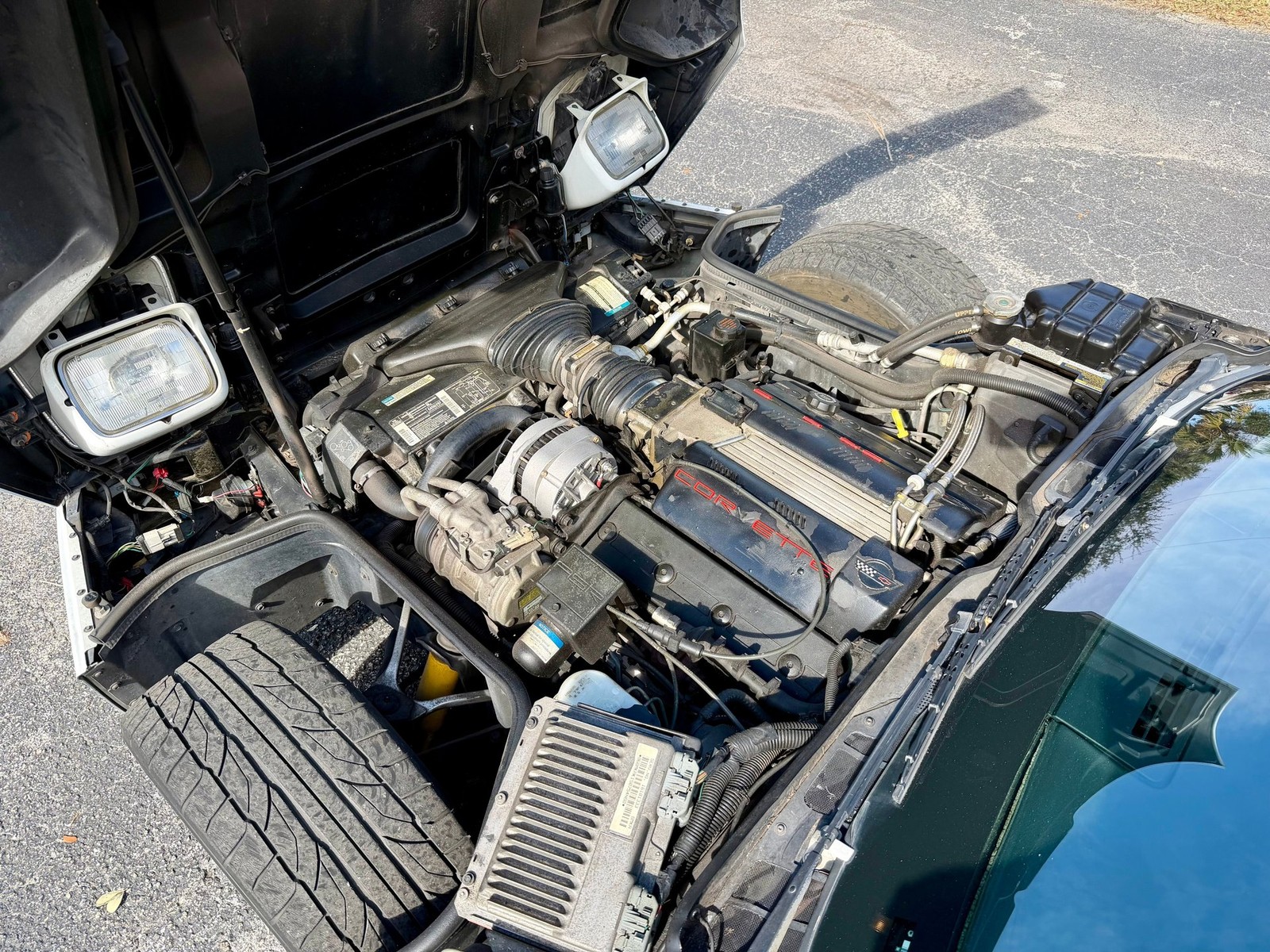 This sweet C4 Corvette is loaded with leather power seats, power windows, power locks, remote power mirrors, convertible top, radial tires, saw bladefactory alloy wheels, traction control, touchscreen CD player, cruise control, and cold factory A/C. Best of all it features a great sounding aftermarket Borla exhaust and C6 Z06 style chrome wheels wrapped in Nitto NT555 radial tires.