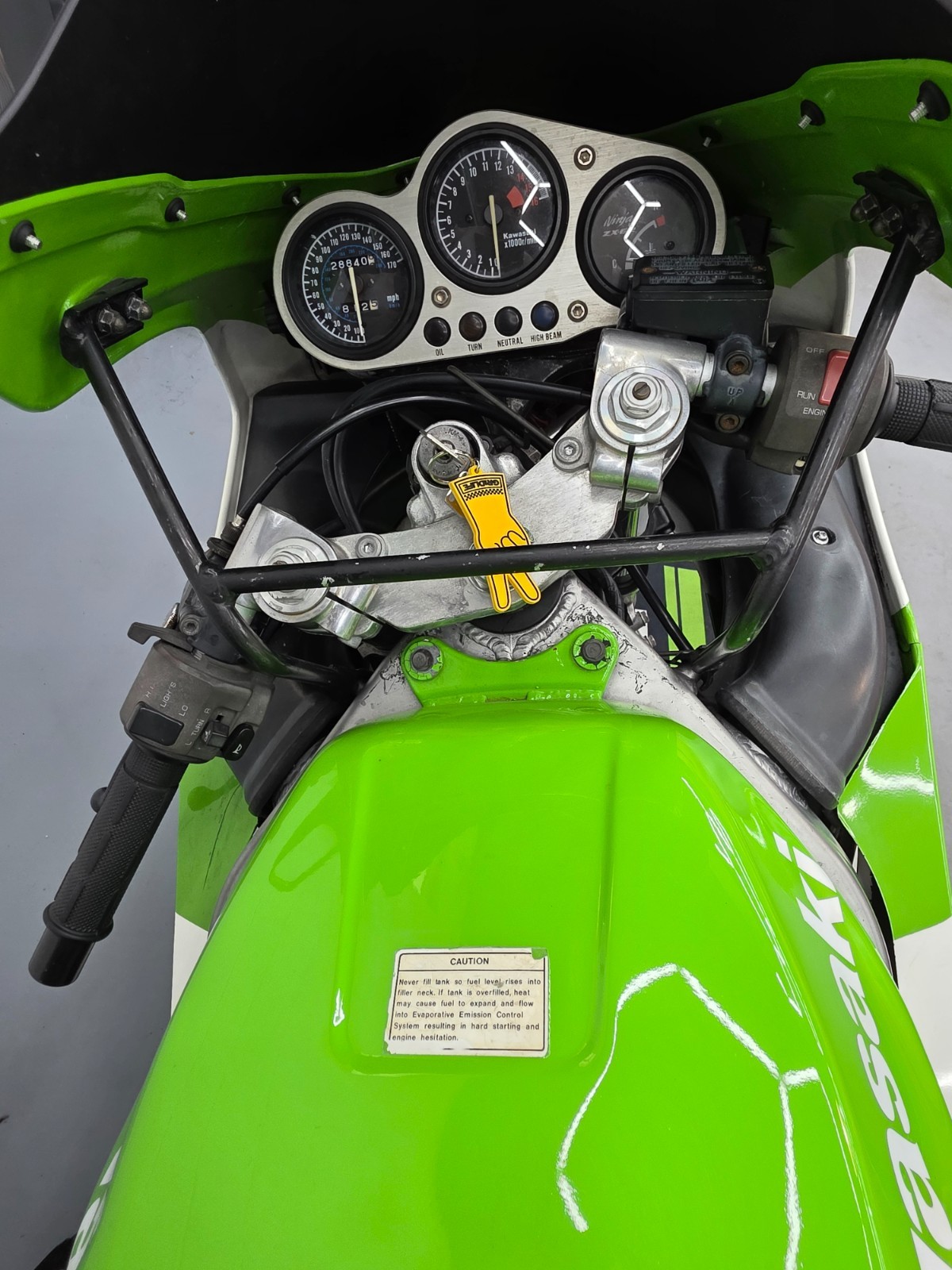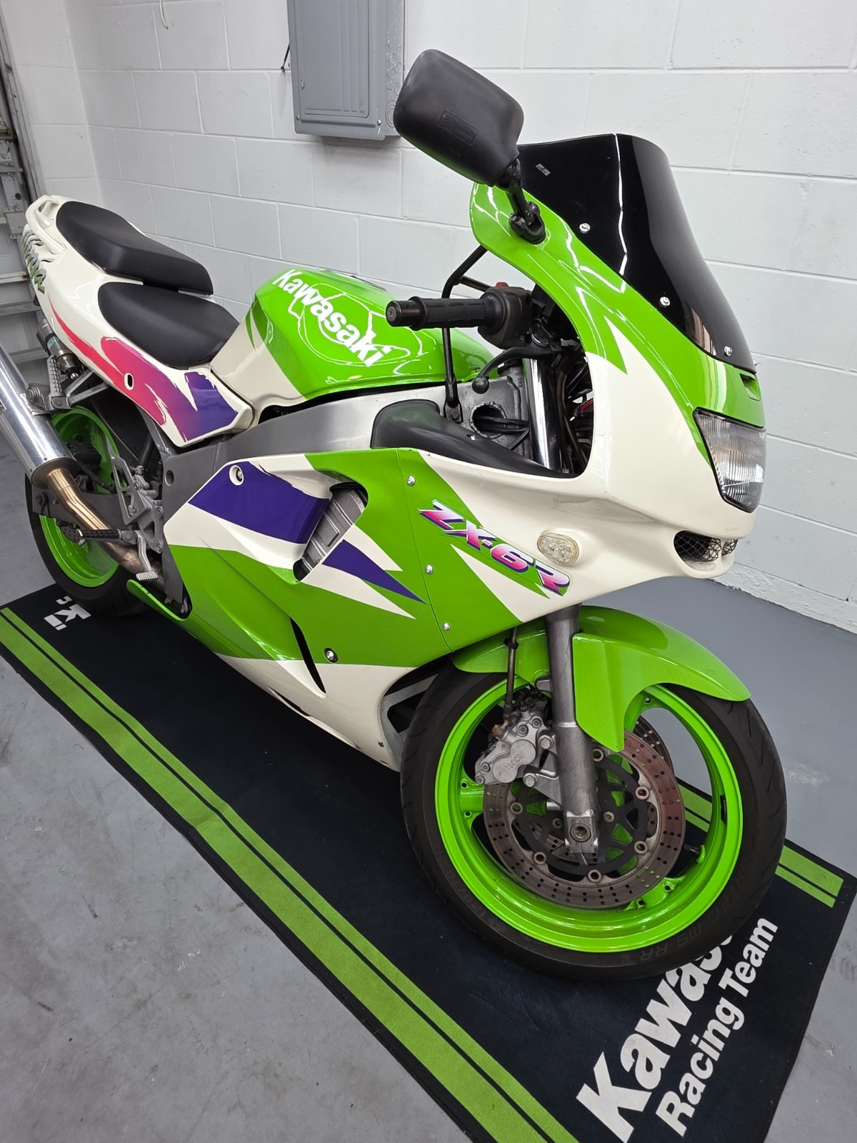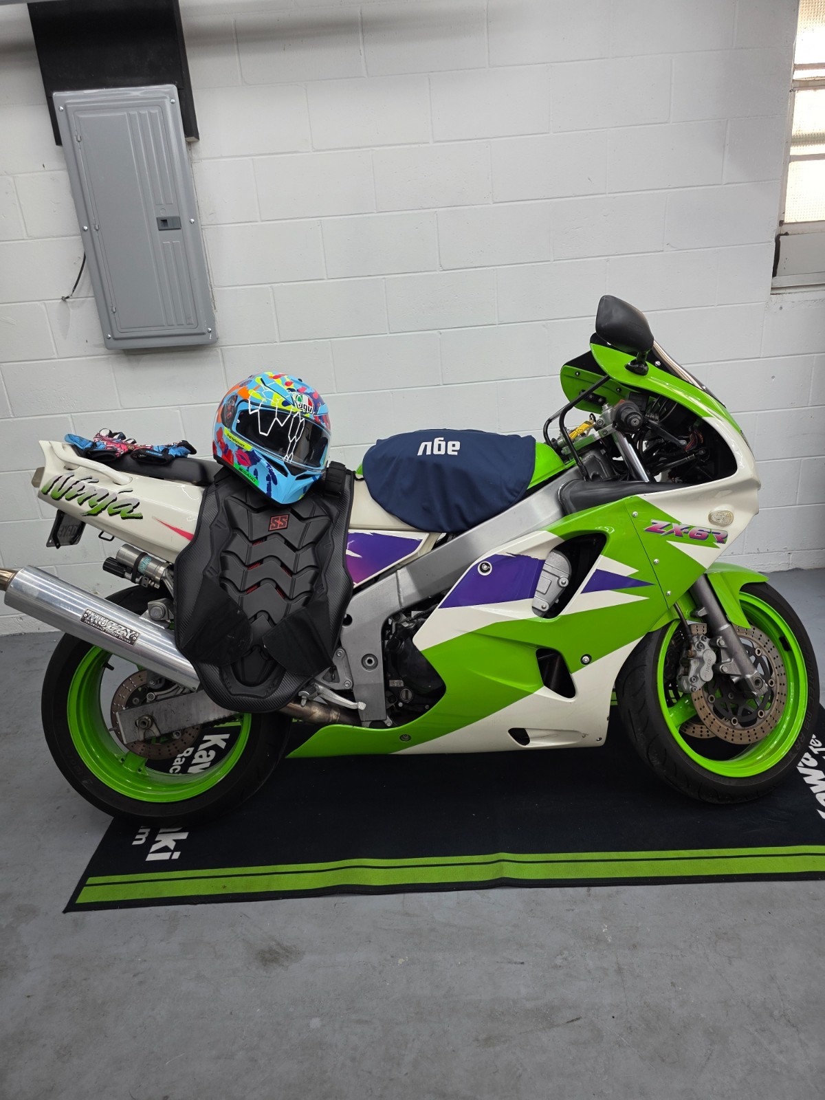 95 Kawasaki ninja ZX6R I think Original fairings with slight signs of aging, restored tank, motor and brake upgrades, new Metzler tires, Muzzy exhaust, Nitron R3 suspension-weight and height adjustable.