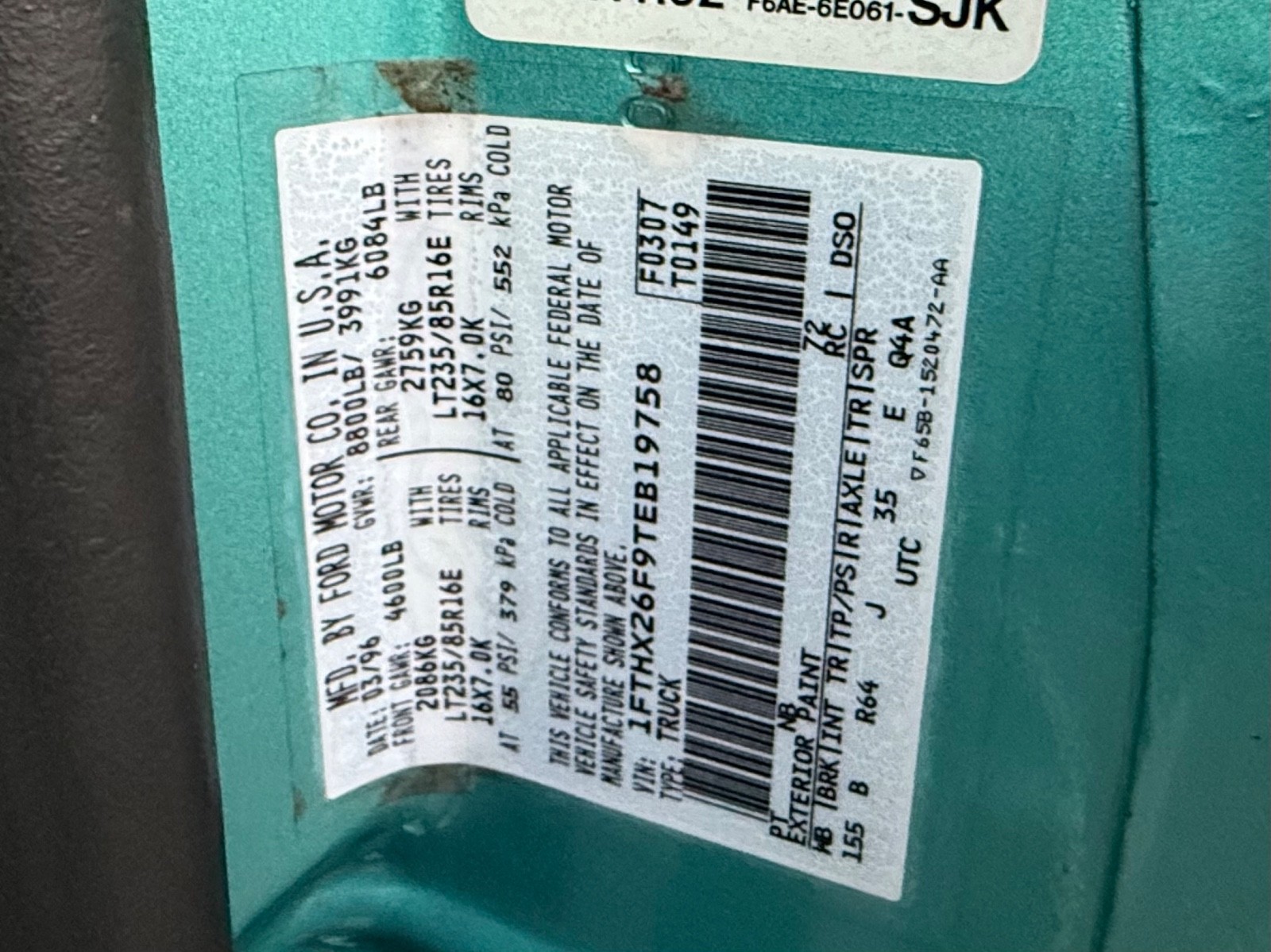 VIN 1FTHX26F9TEB19758