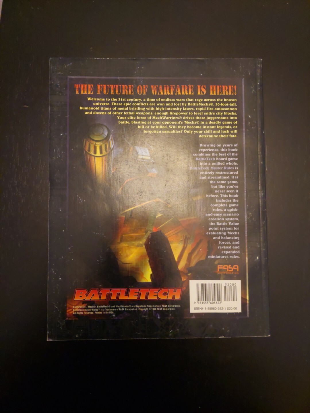 Vintage FASA Corp Battletech Master Rules 1707 Paperback Book 1998