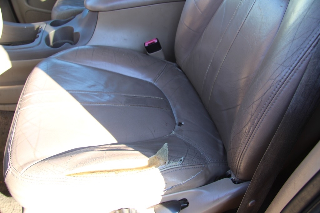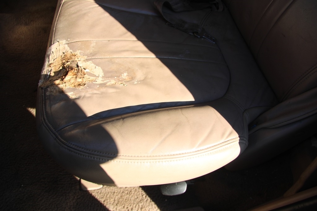 Interior and exterior show wear consistent with age and use.The interior seats are observed to have visible tears