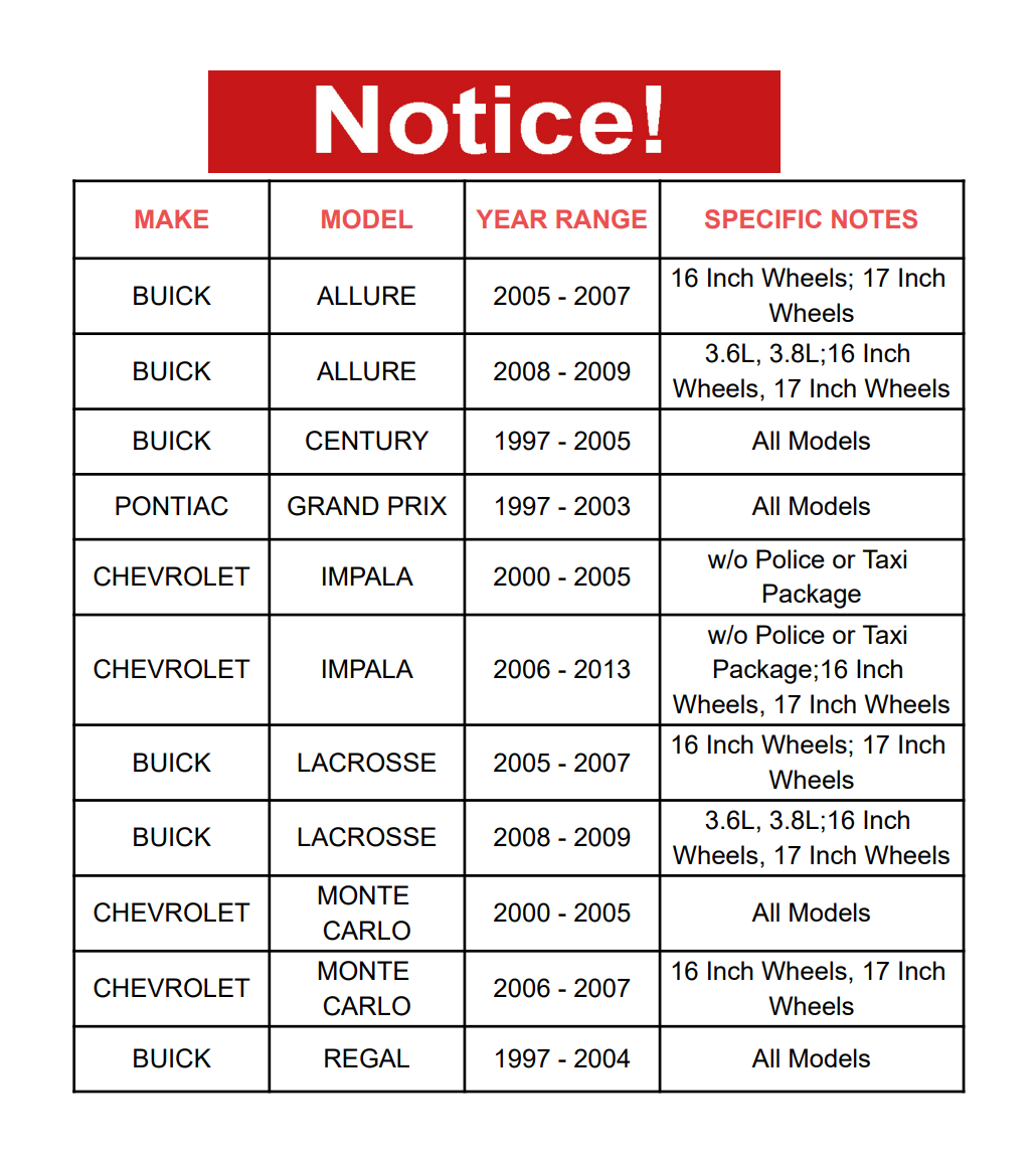3.6L, 3.8L; 16 Inch Wheels, 17 Inch Wheels |