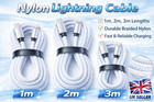 Braided Lead Long Micro USB Cable, 1M 2M 3M High Speed Data Sync Fast Charger UK