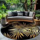 1pc Elegant Black & Golden Leaf Printed Round Mat - Durable Polyester, Hand Wash