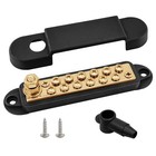 1/4" Stud Power Distribution Block Bus Bar with 12 x #8 Screws, Brass, Black