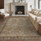 Washable Area Rug 9 x 12 Vintage Print Lightweight Non Slip Warm Taupe Bavni
