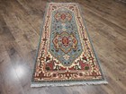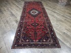 2,8x9,2 ft Turkish Rug, Vintage Runner Rug, Red Blue Striped Wool Rug