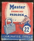 Vintage STRONG-BOY # 22 Padlock Master Lock Co w/Original Box & 2 Keys