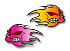 2 Flaming Skulls 9" Vinyl Fire Decals Golf Cart JDM Racing Truck Turbo Stickers
