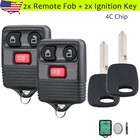 2 For 1998 1999 2000 2001 2002 2003 Ford F150 Remote Fob + Ignition Chipped Key