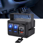 3 Gang Rocker Switch Panel Blue Backlit with PD Type C and USB Charger Voltmeter