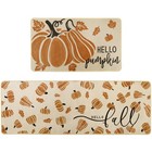 2 PCS Hello Pumpkin Autumn Kitchen Rugs Hello Fall Leaves Set 17x29 17x47 Inch